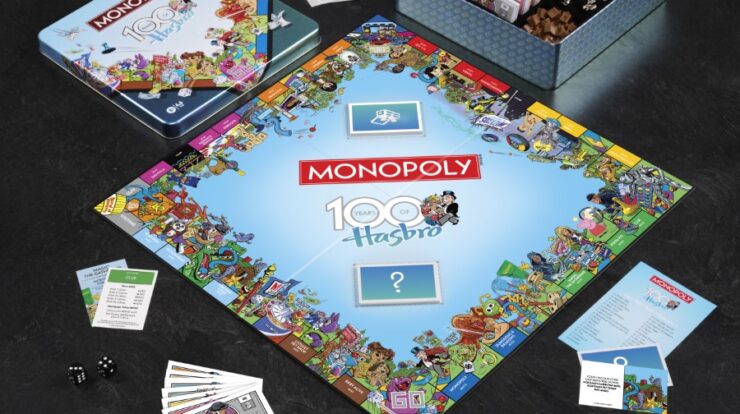 WS Game Company, one of the few premium board game manufacturers with an authorized Hasbro license, announced today the debut of a limited-edition MONOPOLY game in honor of Hasbro’s 100th Anniversary. The new game board, developed in partnership between the two companies, features a fully custom illustrated game board showcasing 90 notable brands that have contributed to Hasbro’s great legacy.