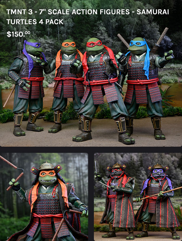 - TMNT 3 – 7″ Scale Action Figures – Samurai Turtles 4 Pack – $150