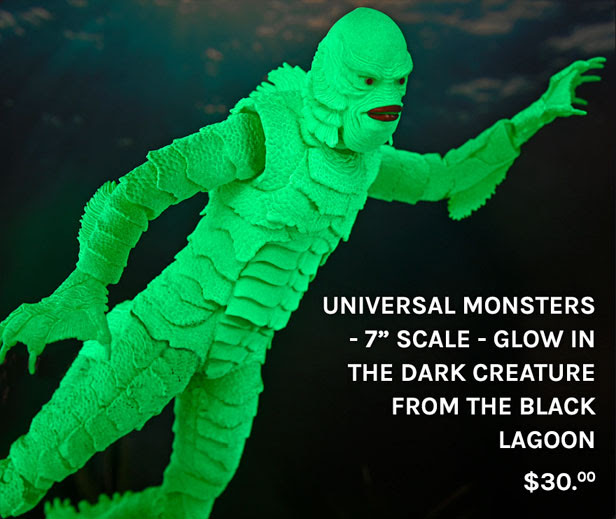 - Universal Monsters – 7″ Scale Action Figure – Glow in the Dark Creature for the Black Lagoon – $30
