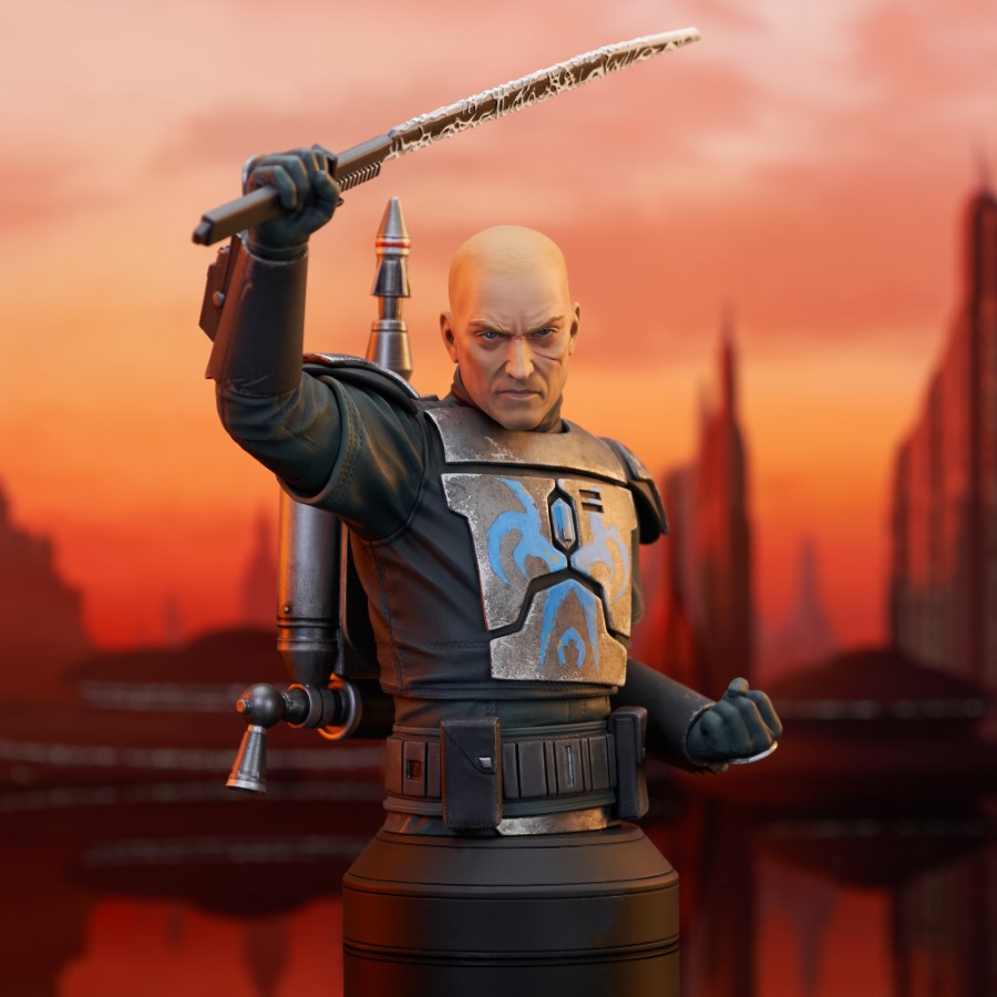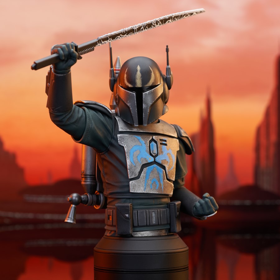 A Gentle Giant LTD release! The leader of the Death Watch has arrived! Pre Vizsla, governor of the moon Concordia and secret leader of the famous Mandalorian commando group, is now the latest 1/6 scale mini-bust from Gentle Giant LTD! Raising the darksaber and measuring approximately 7 inches tall, this exclusive mini-bust features interchangeable helmeted and unhelmeted heads. Limited to only 750 pieces, it comes packaged in a full-color box with a numbered certificate of authenticity. SRP: $130.00