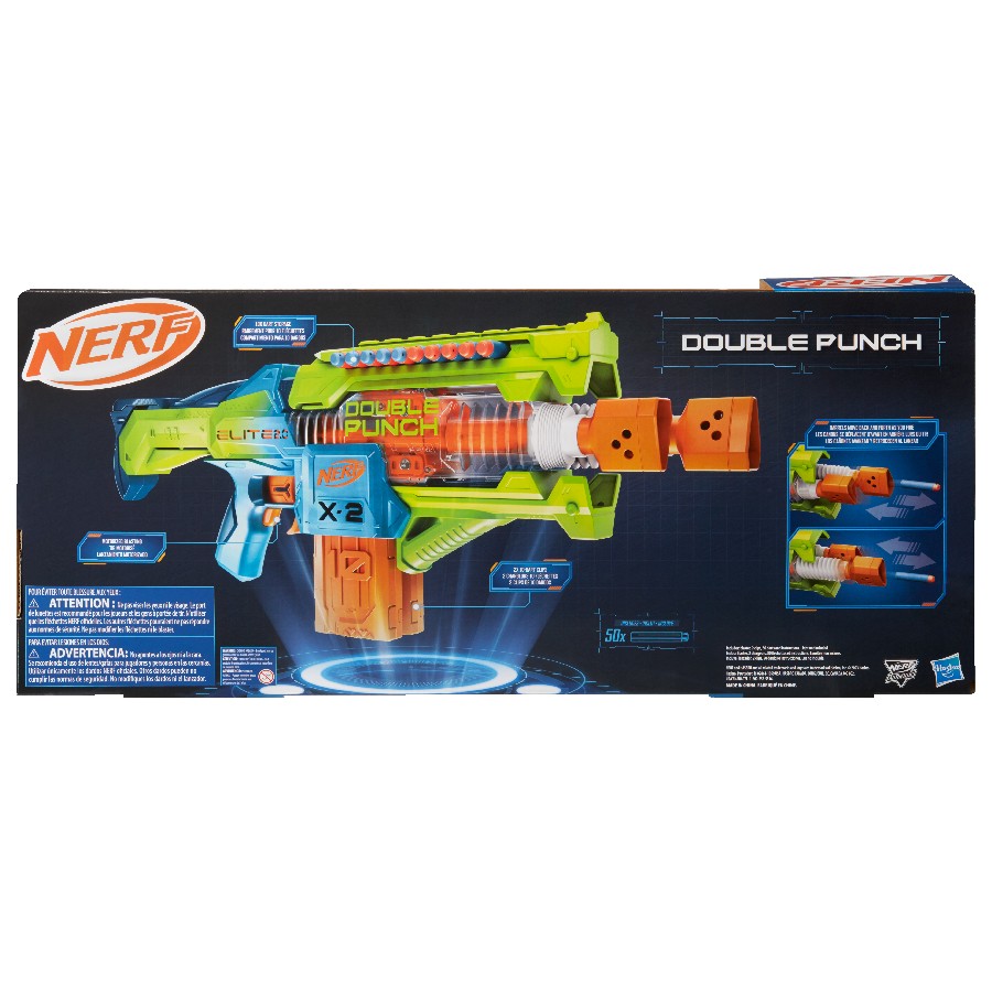 - Meanwhile, the NERF Elite 2.0 Double Punch will have you double your dart blasting fun with double the barrels and double the clips!