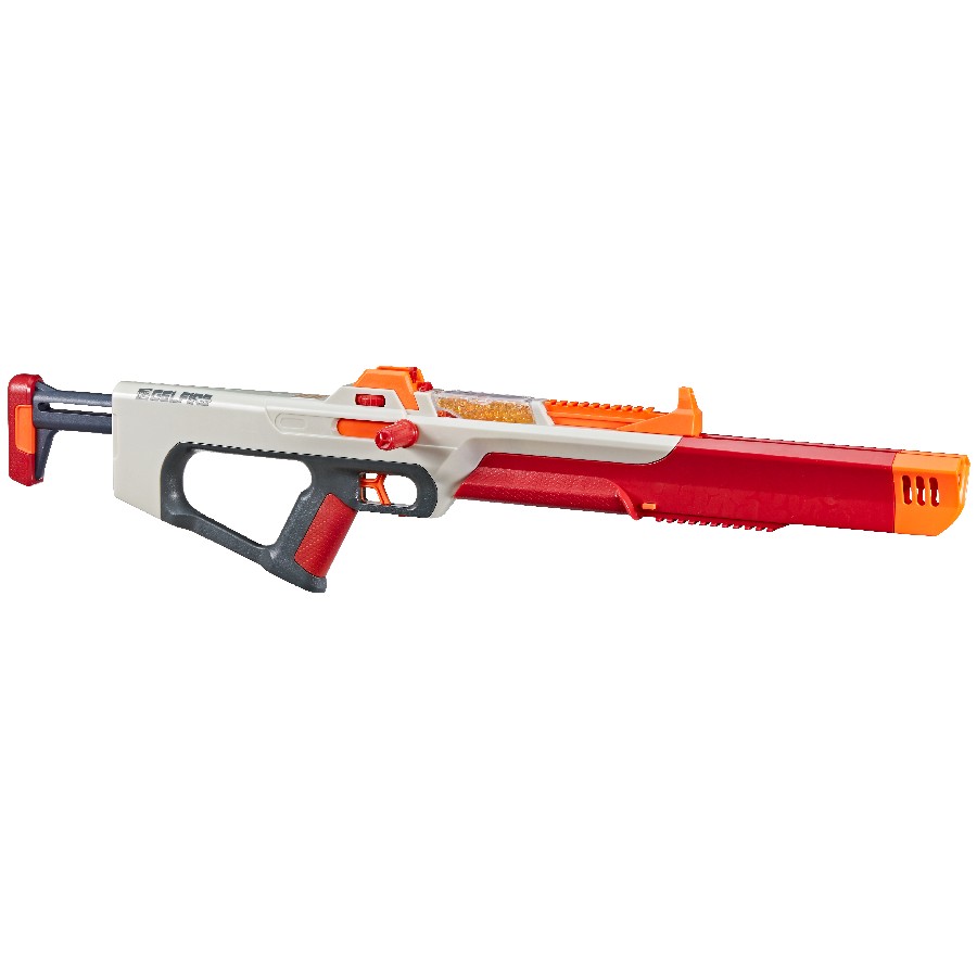 Burst into battle with NERF PRO GELFIRE blasters featuring Gelfire rounds, hydrated rounds that burst on impact! These massive-capacity blasters deliver high-performance blasting to ignite your competitive advantage. NERF PRO GELFIRE rounds come dehydrated in the box, giving you a huge amount of rounds for multiple refills. Add water to hydrate the rounds to prepare them for use. The hydrated rounds fire from the blaster at a high velocity and burst when they hit a target. No need to pick up rounds! The NERF PRO GELFIRE GHOST BLASTER features a removable boost barrel for distance targeting and an extendable buttstock. Unleash rounds at a velocity of up to 200 feet per second! The integrated hopper has a 100-round capacity. Includes 5,000 DEHYDRATED NERF PRO GELFIRE soft super absorbent polymer projectiles. The blaster’s innovative design combines exceptional quality and style. NERF PRO blasters make great gifts for teens. Includes certified protective eyewear, adjustable sights, bolt-action priming, and trigger lock. No batteries needed. Outdoor use recommended. Available for purchase at most major retailers, including Target and Amazon, starting July 2023. #PlayResponsibly