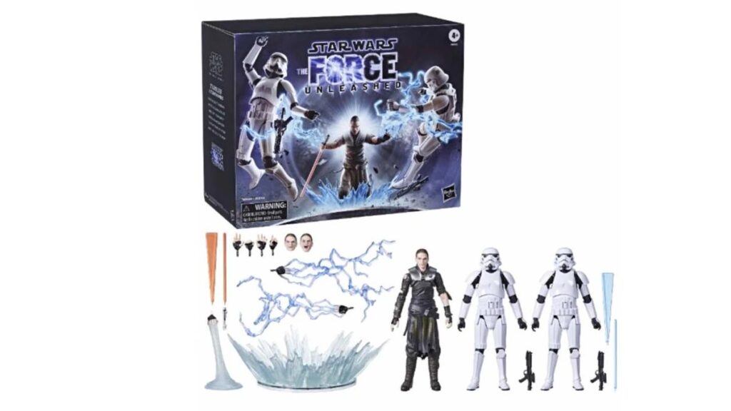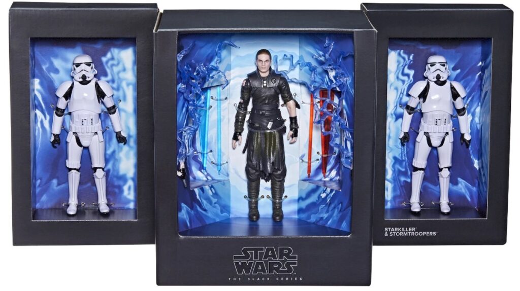 Hasbro’s Star Wars SDCC Exclusives have been revealed today via Fandom.com and Collider.com. In the 6″ scale Black Series the exclusive release is a Force Unleashed boxset including Starkiller, two Stormtroopers and a bunch of accesssories. The 3 3/4″ Vintage Collection exclusive is a boxed Krrsantan with many accessories and a growling head (versus the scowling expression on the standard Vintage Collection figure).