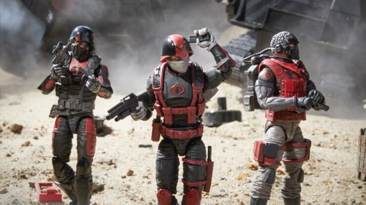 To kick off this SDCC day, Hasbro hosted their “Brand Preview Breakfast” and among the showcased items this morning was the HASLAB H.I.S.S. Tank, but the tank didn’t come alone. Hasbro used the event to unveil a COBRA three pack – the H.I.S.S. Fire Team. I had a little bit of hands on time with the H.I.S.S. this morning, and I seriously can’t wait for mine to ship. Hasbro has released updated photography of the tank and the Fire Team, which you can see below.