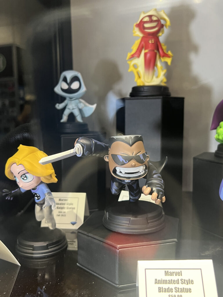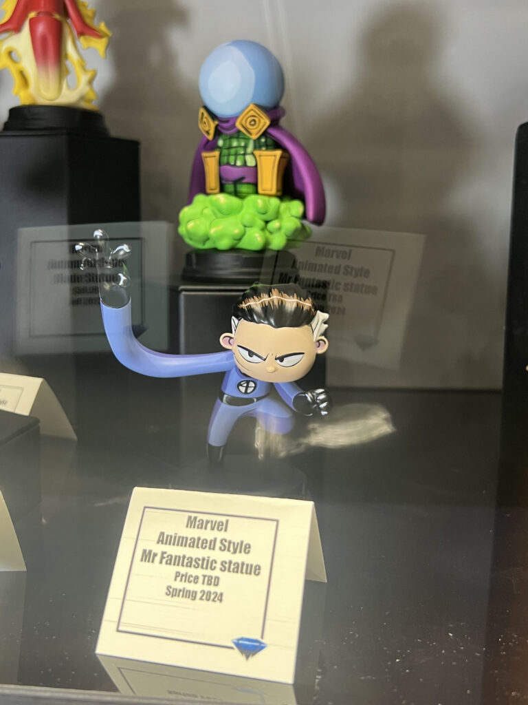 These fun and dynamic small statues can bring a new flair to your shelf with their animated styling. DST have made quite a few Fantastic Four characters in this line. They were also showing characters like Mysterio, Moon Knight, and Blade.