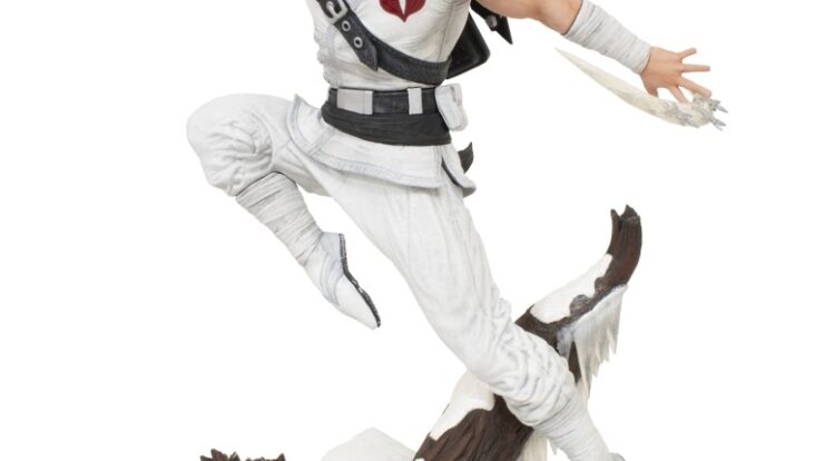 A Diamond Select Toys release! Enter the ninja! Cobra operative Storm Shadow has his sights on the GI Joe team, particularly his blood brother Snake Eyes! Leaping out of a wintry landscape, sword drawn and throwing stars flying, this approximately 11-inch sculpture of Tommy Arashikage is made of high-quality PVC and features detailed sculpting and paint applications. It comes packaged in a full-color window box. Designed by Joe Allard, sculpted by Jorge Santos Souza! SRP: $59.99