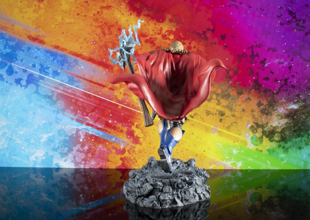 A Diamond Select Toys release! Thor is back, but this time, DST brings the love, and Thor brings the thunder! Wearing his new, ornate armor as seen in Marvel’s Thor: Love and Thunder, Thor sprints toward the viewer, cape flaring and Stormbreaker in hand. Measuring approximately 9 inches tall, Thor is made of high-quality PVC and comes packaged in a full-color window box. Designed by Caesar, sculpted by Rocco Tartamella. SRP: $75.00