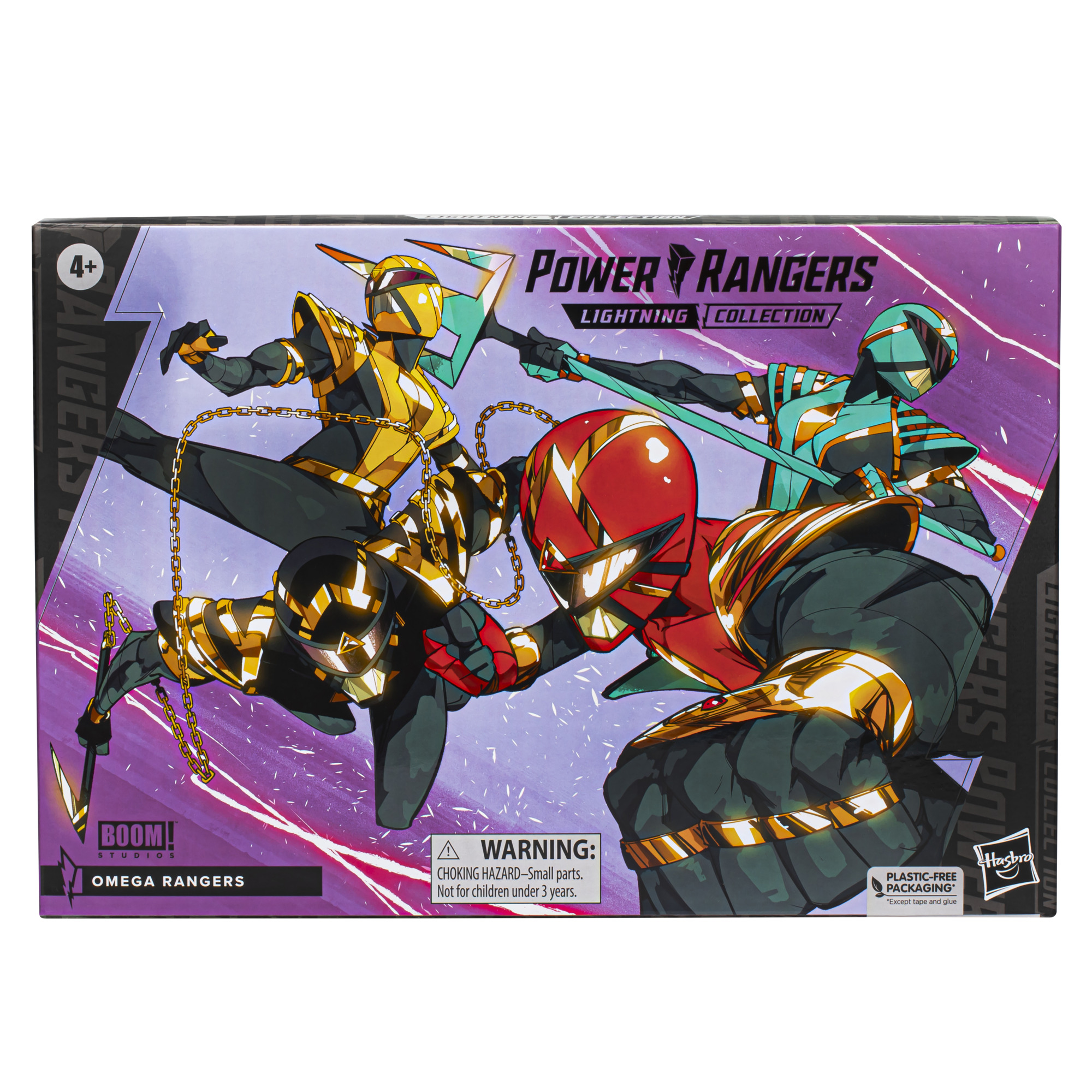 Inspired by the BOOM! comic series, celebrate your love of Power Rangers with the Power Rangers Lightning Collection Omega Rangers Pack! From Dino Fury back to the original Mighty Morphin Power Rangers, the Power Rangers have brought teamwork, action, and adventure to generations of fans. The legacy continues with figures, vehicles, collectibles, and roleplay toys from Hasbro, celebrating ranger teams from Mighty Morphin to Dino Fury. Imagine all the action of Power Rangers with toys from Hasbro! This Power Rangers set includes 4 action figures — Omega Red Ranger, Omega Black Ranger, Omega Yellow Ranger, and Omega Blue Ranger–17 accessories and 4 sets of alternate hands. These Power Ranger figures feature multiple points of articulation for awesome poseability. Look for more collectible figures in the Lightning Collection. Each sold separately.
