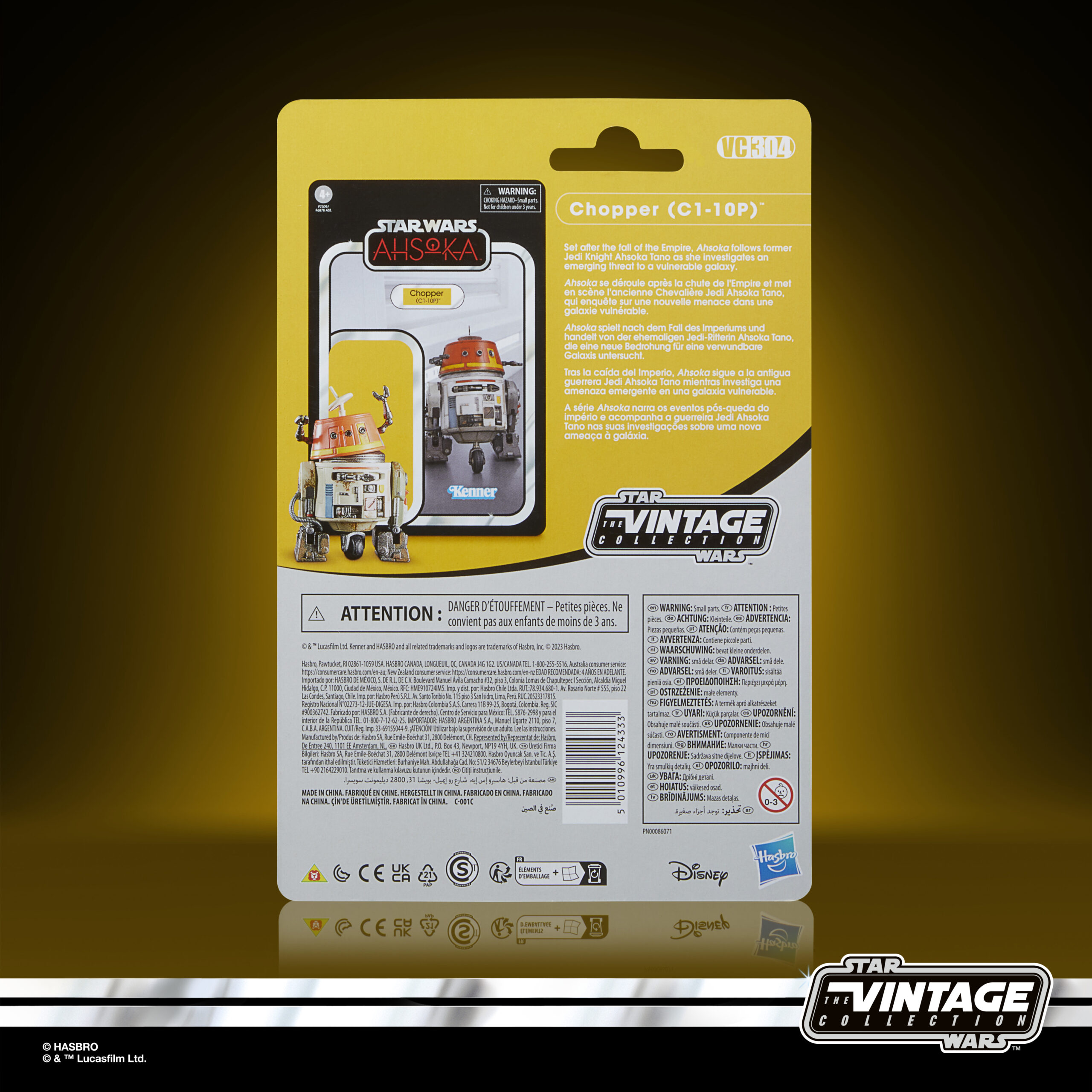 Set after the fall of the Empire, AHSOKA follows former Jedi Knight Ahsoka Tano as she investigates an emerging threat to a vulnerable galaxy. Fans can celebrate the legacy of STAR WARS, the action-and-adventure-packed space saga from a galaxy far, far away, with this premium 3.75-inch scale STAR WARS: THE VINTAGE COLLECTION HK-87 CHOPPER (C1-10P) figure inspired by STAR WARS: AHSOKA live-action series. This figure features premium detail and design across product and packaging inspired by the original Kenner line, as well as the entertainment-inspired collector grade deco. Includes figure and 2 entertainment-inspired accessories including a flight stand.