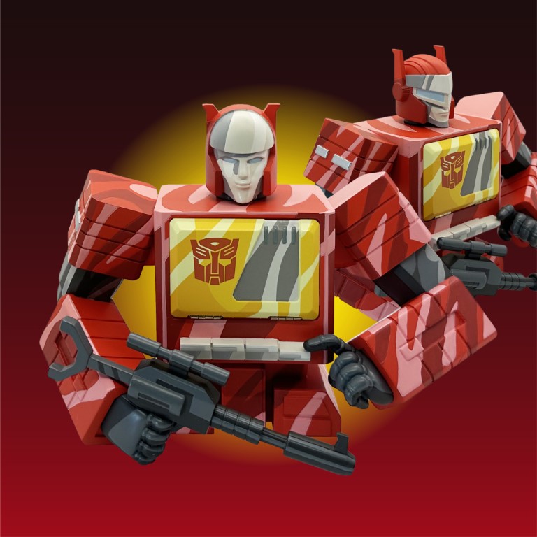 This music-loving Autobot, holds up to 100 cards with his tape deck flipped down. But if you don’t need your cards out, close the deck and Blaster is ready to just hang on your desk. He includes two interchangeable heads to display as either the G1 cartoon version or the retro toy version.