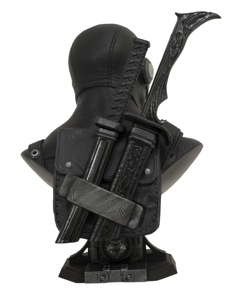 A Diamond Select Toys release! Snake Eyes is a legend on the GI Joe team, and now he’s a Legend in 3D! The ninja commando sports one of the most distinctive face masks of the entire Joe roster, and now his portrait is captured in glorious ½ scale as the latest Legends in 3D 10-inch bust, complete with sword hilts atop an Arashikage clan symbol base. Limited to only 1000 pieces, it comes packaged with a numbered certificate of authenticity in a full-color box. Designed by Joe Allard, sculpted by Rocco Tartamella SRP: $200.00