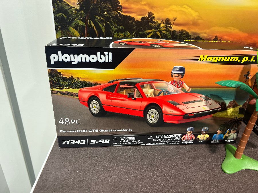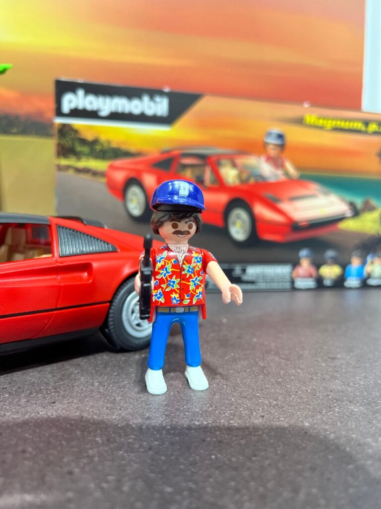 Playmobil is always one of my favorite booths to visit at toy fair because everything looks so fun. Admittedly most of my toys just stand on a shelf and are admired, but there’s something irrestible about toys that just look fun. This year was no exception – however, one specific set pulled me into the booth. And, yes, it’s available now. It’s Magnum PI. Check out the pics – and if you want, buy it (Amazon affiliate link). It’s amazing.