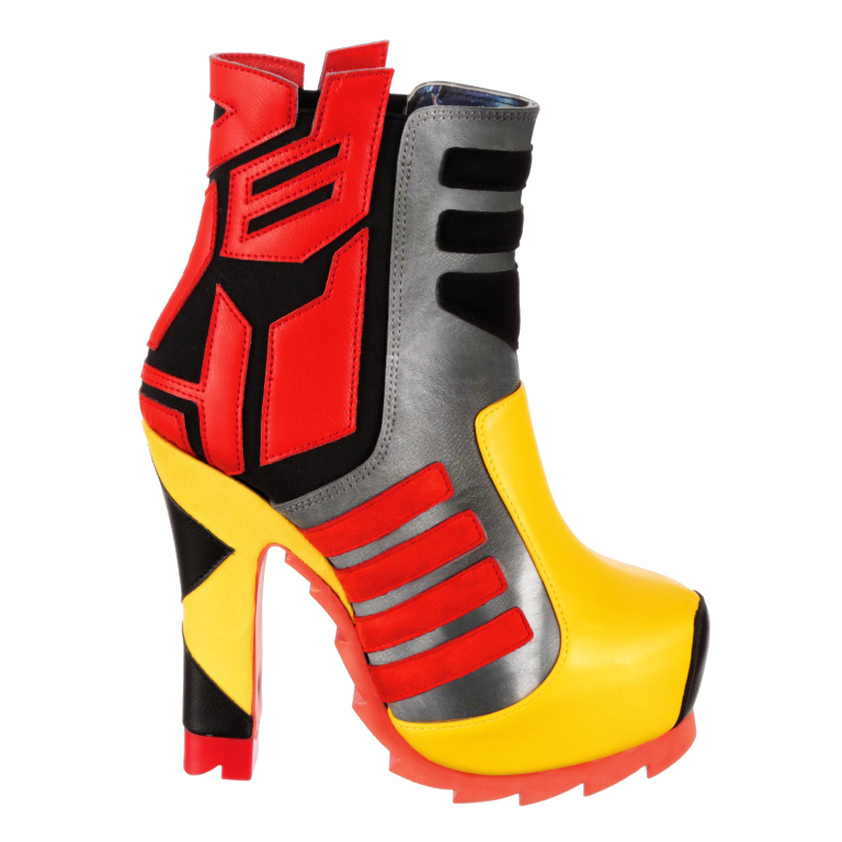 · AUTOBOT: Heroically high-heeled boots with a hidden platform, perfect for any Autobot fan! These streamlined and fierce motorbike boots are decked out in bright red and yellow, offset with matte grey detailing. The Autobot logo elasticated back means these can easily be pulled on and are comfortable to move around in, so pop them on and let’s get going!