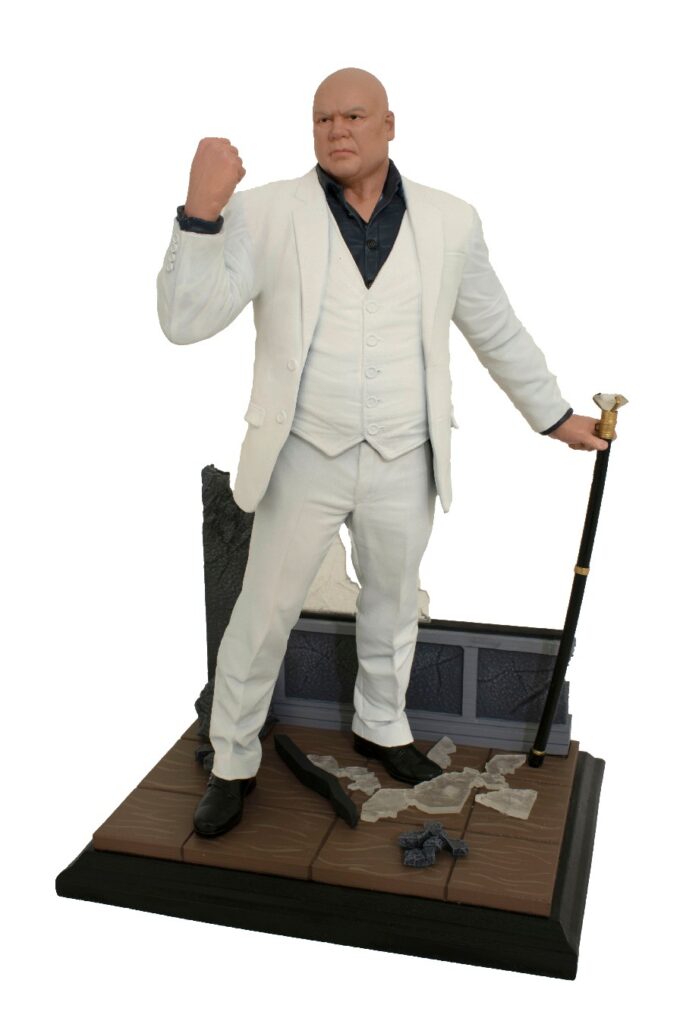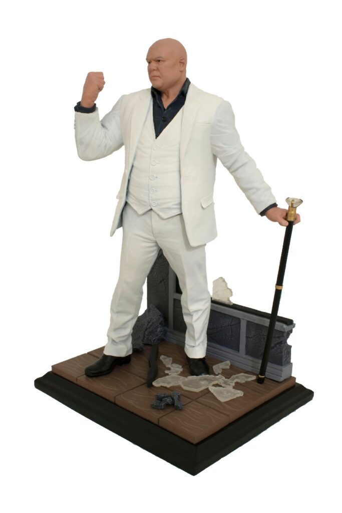 A Diamond Select Toys release! The Kingpin has arrived! This 10-inch Gallery Diorama of Vincent D’Onofrio as TV’s Kingpin is based on his appearance in the Hawkeye TV series. Wearing his white suit, black shirt and carrying his diamond-headed cane, The Kingpin stands amidst the wreckage of his fight with Kate Bishop. Measuring approximately 10 inches tall, this sculpture is made out of high-quality PVC and comes packaged in a full-color window box. Designed by Nelson X. Asencio, sculpted by Rocco Tartamella! SRP: $59.99