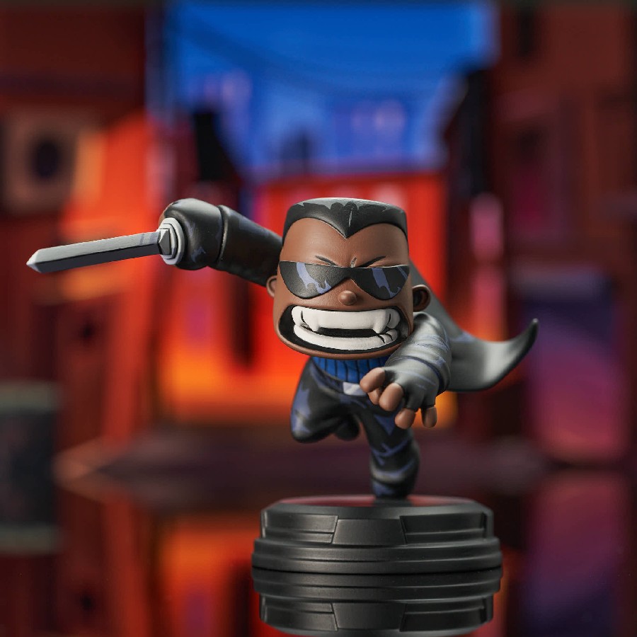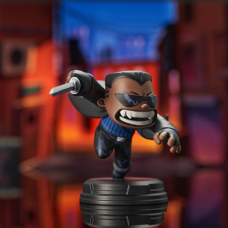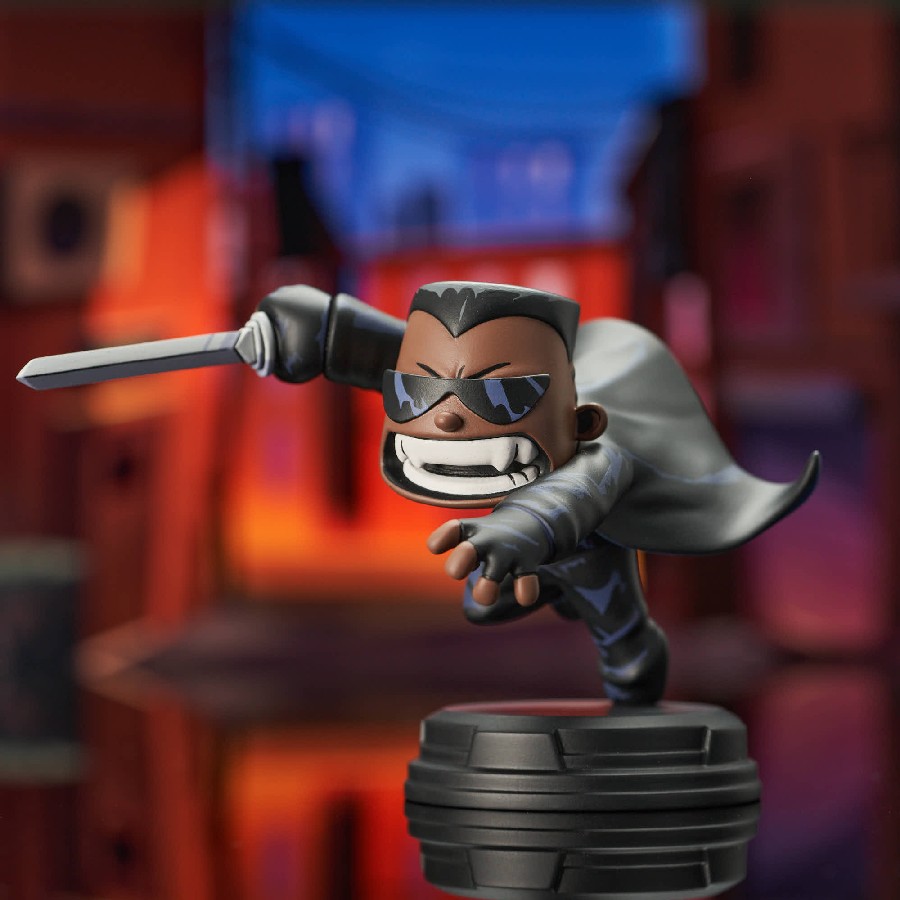 A Gentle Giant LTD release! Bloodsuckers beware! The daywalking half-vampire once called Eric Brooks, now called Blade, is the newest animated-style statue from Gentle Giant LTD! Based on the Marvel cover artwork of Skottie Young, this statue of Blade lunging forward with sword in hand measures approximately 3.5 inches tall. It is limited to only 3,000 pieces and comes packaged with a numbered certificate of authenticity in a full-color box. Sculpted by Casen Barnard! SRP: $59.99
