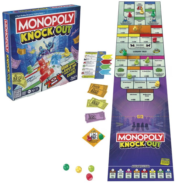 This week Hasbro announced the upcoming launch for the newest MONOPOLY game to slide into homes, bringing with it a new way to play. The brand-new MONOPOLY Knockout game is available now at Walmart and will be at most major retailers starting January 1st.