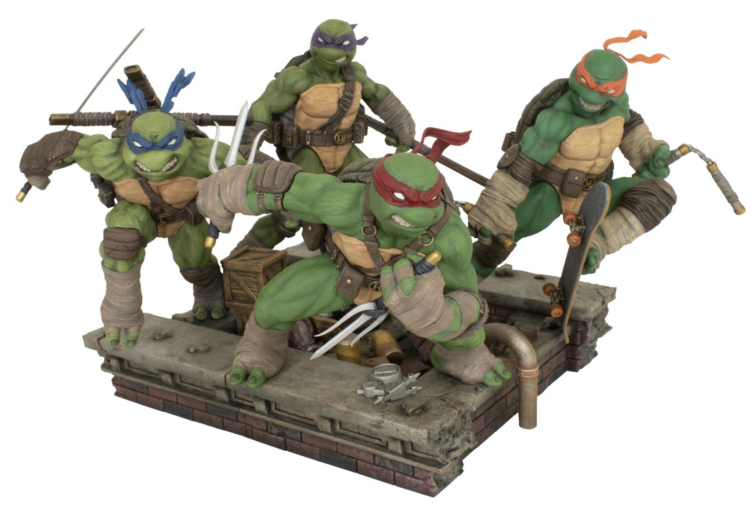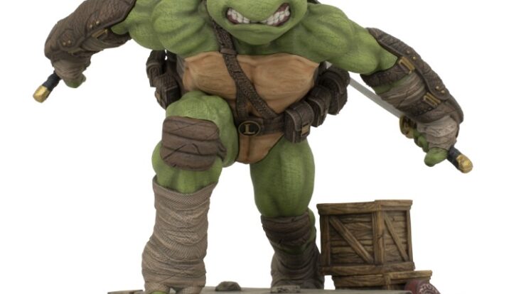 A Diamond Select Toys release! You’ve never seen the TMNT like this before! DST’s new line of dynamic Teenage Mutant Ninja Turtles Gallery Dioramas kicks off with katana-wielding leader Leonardo! Collect all four atop their rooftop bases to form one big diorama! This 9-inch diorama is made of high-quality PVC, and comes packaged in a full-color window box. Designed by David Forrest of Kinetic Underground, sculpted by Sandro Luis Sampaio! Coming next week: Raphael! SRP: $75.00