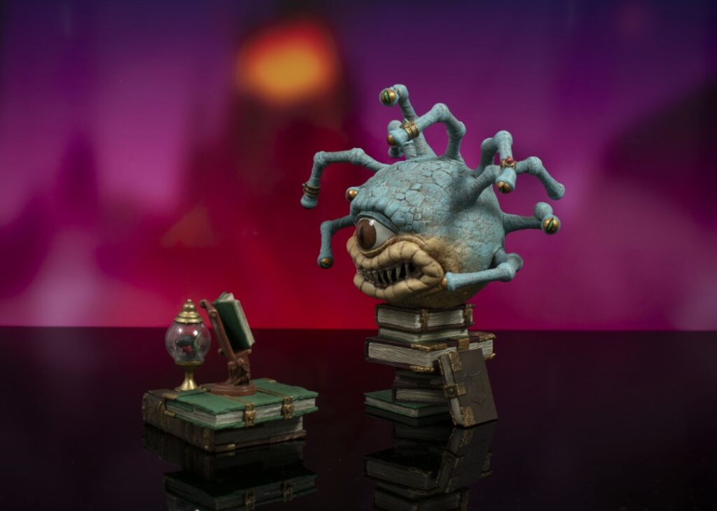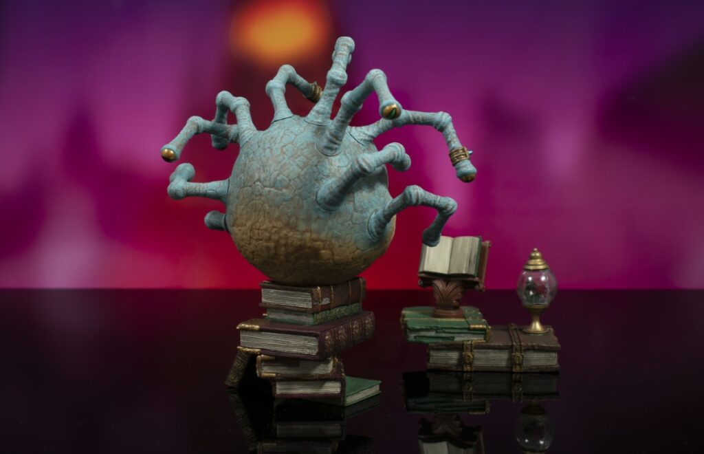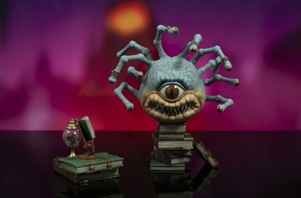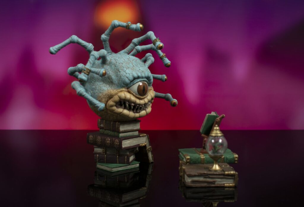 A Diamond Select Toys release! They say beauty is in the eye of the beholder, and this beholder diorama is beautiful! Depicting the beholder crimelord Xanathar as he pores over a tome of forgotten lore, this two-piece diorama based on the Dungeons & Dragons stories is made of high-quality PVC and stands about 9 inches tall. It comes packaged in a full-color window box. Designed by Caesar, sculpted by Sandro Luis Sampaio! SRP: $75.00