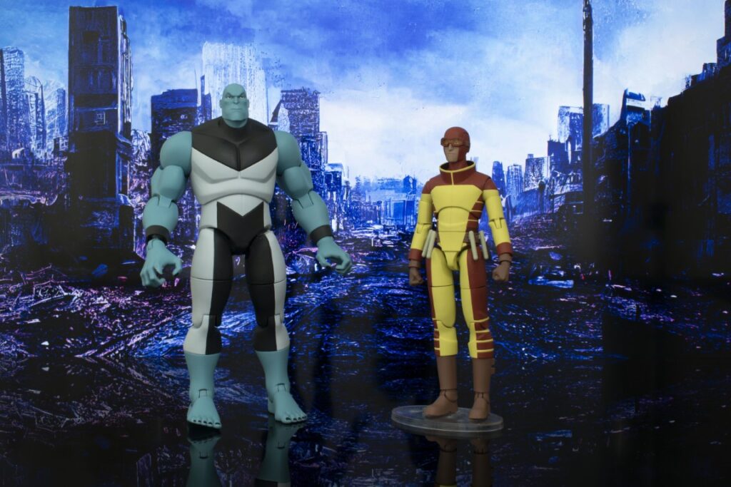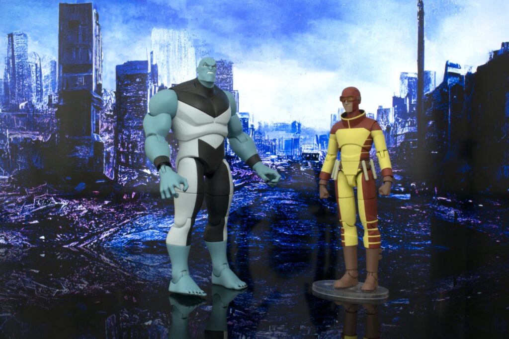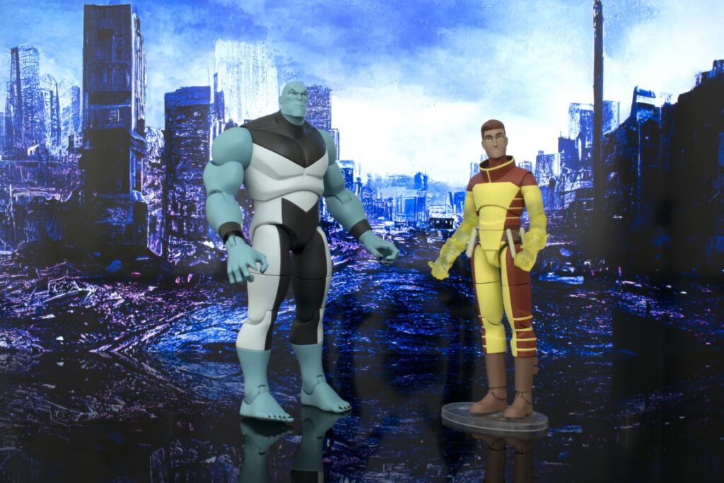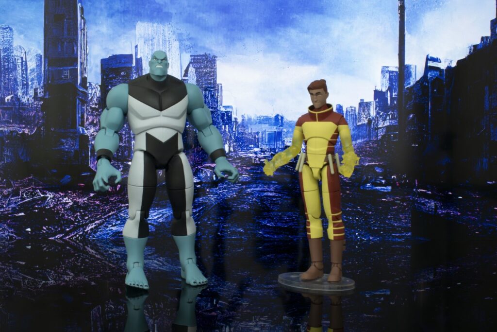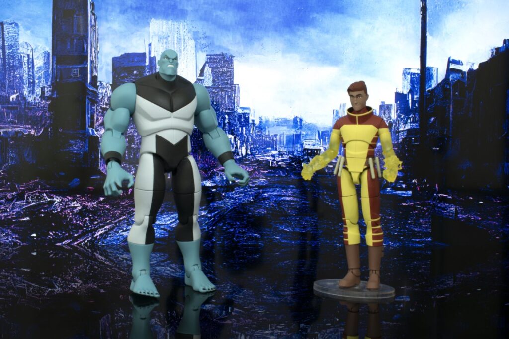 A Diamond Select Toys release! The new season of Invincible is here, and with it a new series of Invincible action figures! Teen Team and Guardians of the Globe member Rex Splode reps for the heroes, with alternate unmasked head and energy-charged hands, and the villain of the series is one of the Mauler Twins, with energy cannon — buy two and make them bicker about which is the original and which is the clone! Each action figure measures 7-8 inches tall, and features 14 points or more of articulation. Each comes packaged in a full-color window box. Sculpted by Chris Dahlberg! SRP: $29.99/ea.
