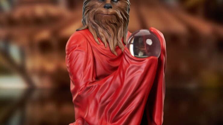 A Gentle Giant LTD release! As the holidays approach, a Star Wars fan’s thoughts turn to Life Day, the ancient Wookiee celebration of family, joy and harmony, which spread across the galaxy in the wake of the Galactic Empire’s defeat. Wearing his Life Day robes and holding a crystalline Life Day Orb, Chewbacca is ready to celebrate in this holiday mini-bust. It measures approximately 7 inches tall, is limited to only 1000 pieces, and comes packaged with a numbered certificate of authenticity in a full-color box. Previously offered New To Order. SRP: $130.00