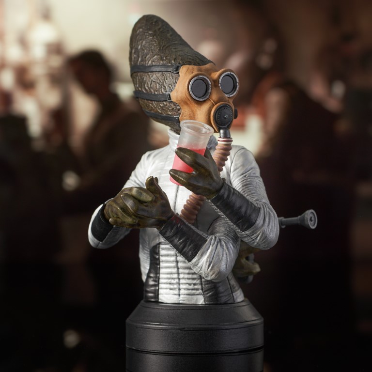 A Gentle Giant LTD release! It’s that time of year, and it’s time to go back to the scariest cantina on any planet! Four-armed Morseerian smuggler Nabrun Leids was one of the more unusual-looking patrons of the cantina in Mos Eisley, and this approximately 6-inch bust depicts the masked alien enjoying a drink, even as he pulls a blaster on you. Limited to only 1,000 pieces, this gentlegiantltd.com exclusive comes packaged with a numbered certificate of authenticity in a full-color box.