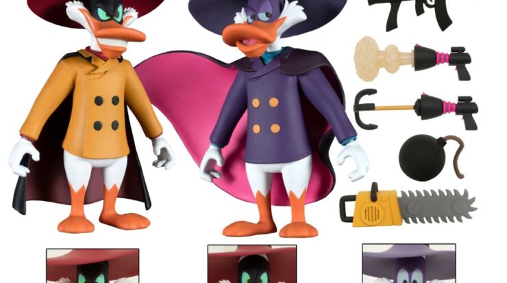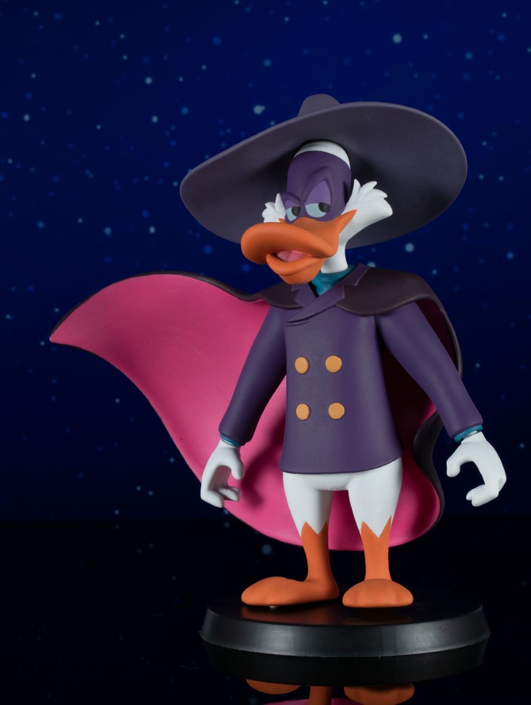 A Diamond Select Toys release! When there’s trouble, you call D.W.! The Marauding Mallard swoops into action figure form courtesy of DST, along with his evil opposite, Negaduck! Each standing approximately 4 inches tall, these fully poseable action figures feature removable hats, interchangeable heads, and a variety of hands and accessories. They come packaged in a full-color window box. Designed by David Forrest of Kinetic Underground, sculpted by Varner Studios! SRP: $49.99