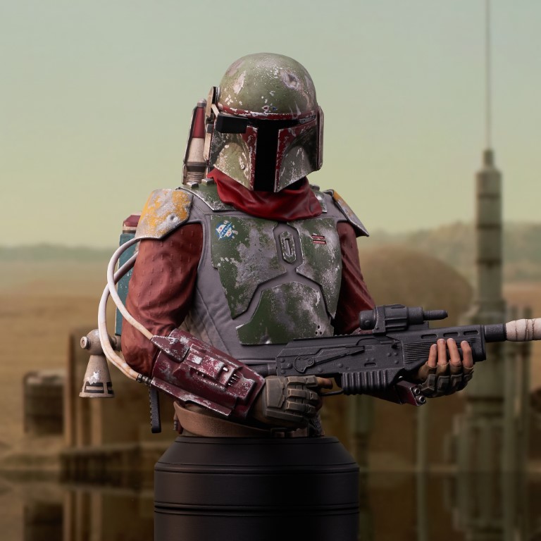 A Gentle Giant LTD release! The Marshal of Mos Pelgo has arrived! Wearing Boba Fett’s old armor, the law enforcer from Tatooine is ready to join the 1/6 scale mini-bust collection from Gentle Giant LTD! Measuring approximately 6 inches tall atop a pedestal base, this bust includes interchangeable helmeted and unhelmeted heads. Limited to only 3,000 pieces, it comes packaged in a full-color box with a numbered certificate of authenticity. SRP: $150.00