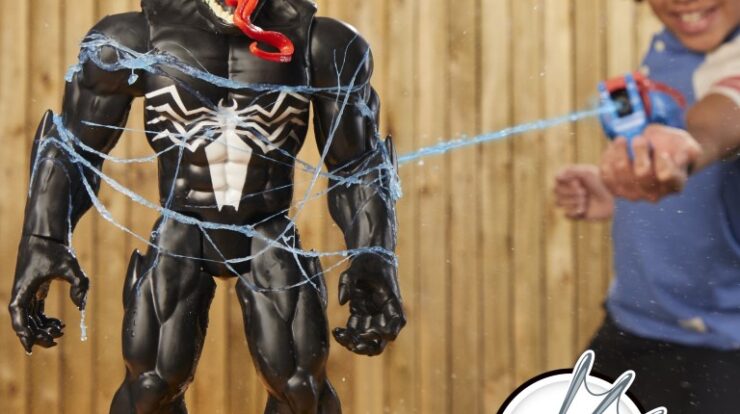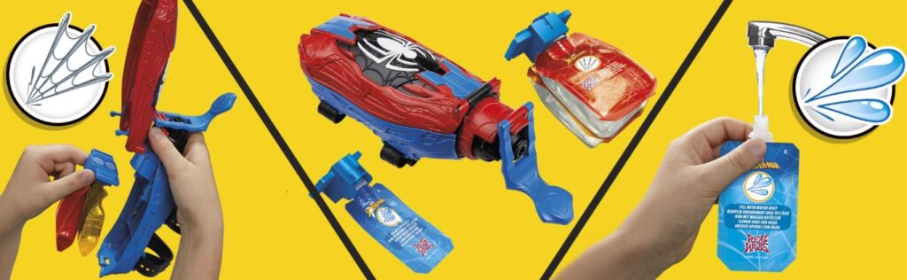 Gone are the days of pretending silly string is Spider-Man’s webbing, as Hasbro has now unveiled the latest innovation in web technology with the Marvel Spider-Man Real Webs Ultimate Web Blaster. Perfect for both the novice or experienced web slinger, this new forumation is an innovative fluid that turns into a gel-like webbing. Perfect for both roleplay and adorning your Marvel Universe figures and playsets in a sticky spider-web, the Ultimate Web Blaster includes the wrist mounted launcher, a web fluid pouch (refills available) and a refillable water pouch for fun in the sun summer days.