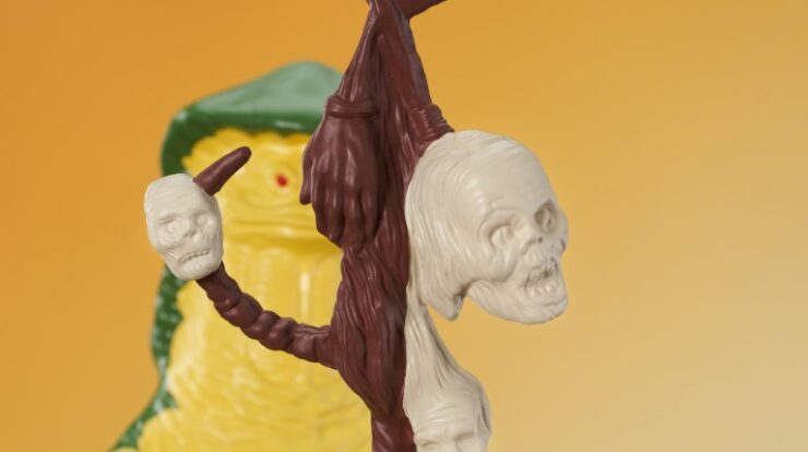 And the other is Amanaman, the alien headhunter seen in Jabba the Hutt’s palace in Return of the Jedi. This Jumbo 12-Inch Retro Figure — based on the vintage figure, one of the “original 96” — comes packaged on a large, resealable blister card with a vintage-style cardback, his staff decorated with skulls and a Power of the Force coin. Just like back in 1985!