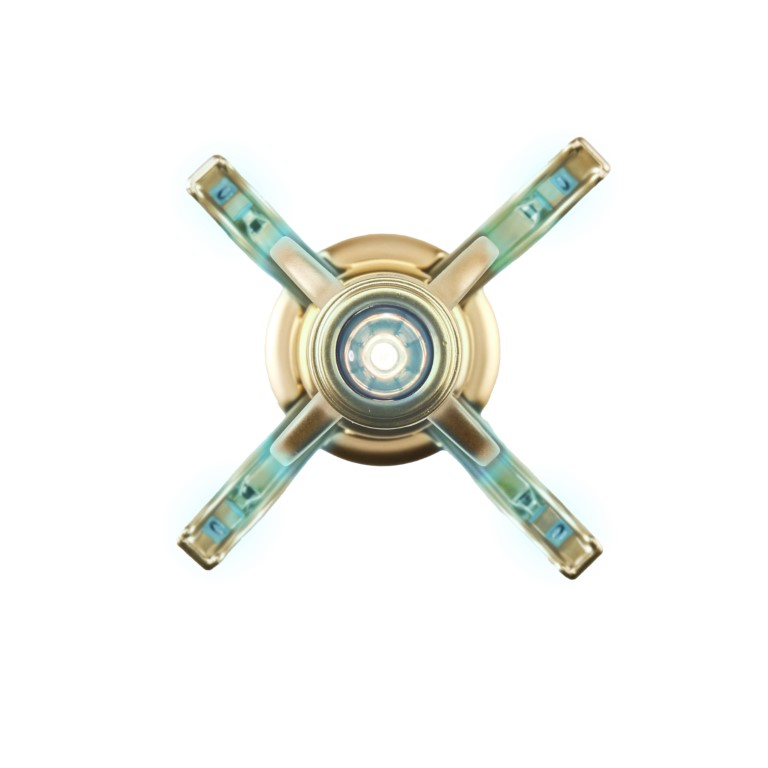 The exclusive device features a gold effect ‘electro plated’ finish, light and sound FXs, and an extending and opening emitter. Slide the control button to open and close or press and hold for sounds.