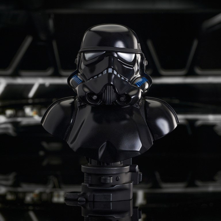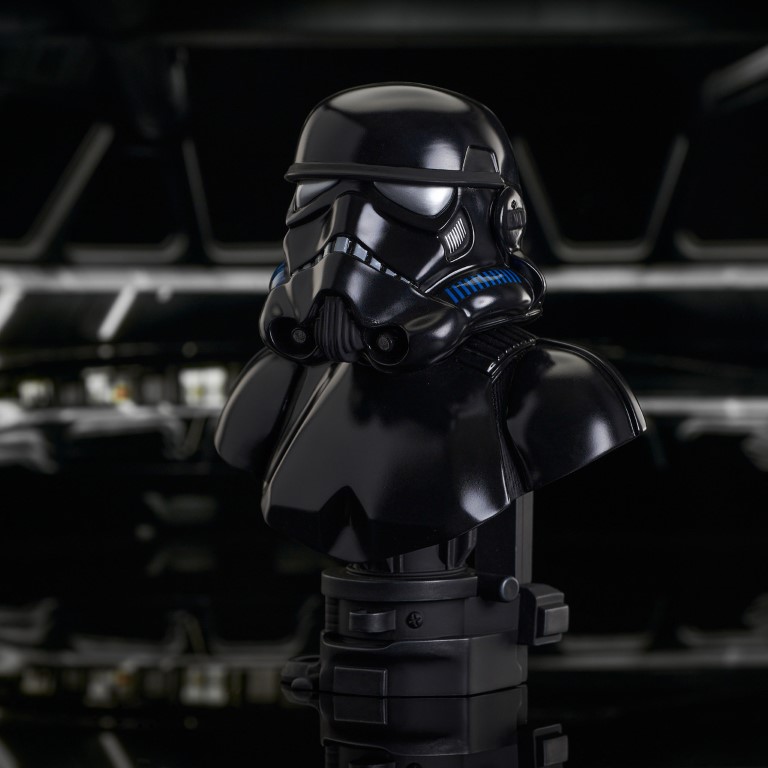 A Gentle Giant LTD release! For stores participating in Free Comic Book Day, Gentle Giant LTD is travelling to a far-away galaxy to bring back… the Shadow Trooper! This ½ scale bust of a black-armored storm trooper is made of resin and sits atop a sculpted technological base. It measures approximately 10 inches tall and is limited to only 1000 pieces. It comes packaged in a full-color box with a numbered certificate of authenticity. An FCBD participant exclusive!
