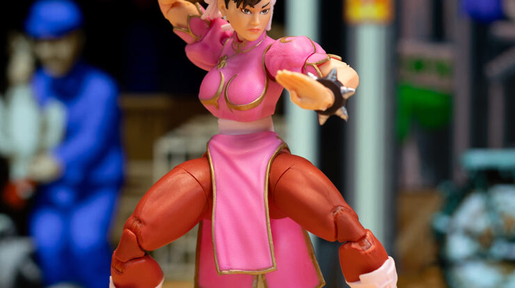 The third exclusive shared to date is the ‘Player 2’ colorway of Chun-Li. Now in pink, Chun-Li includes three interchangeable heads, 3 sets of hands, Hyakuretsukyaku and Kikoen effect pieces and a bonus laughing head sculpt in ‘Player 1’ colors for the readily available figure. Just like Ken, she will be available at Jada’s booth starting preview night and available online the next morning.
