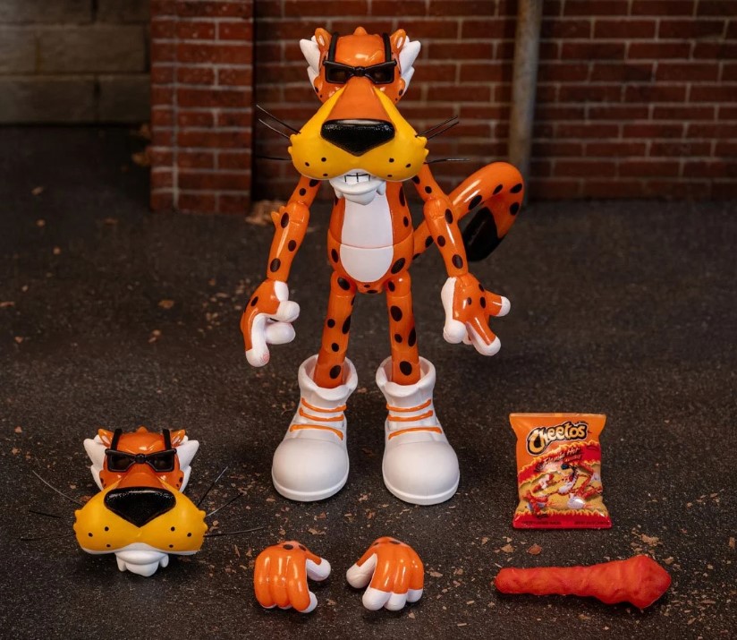 The first exclusive, available for pre-order now at Entertainment Earth, is a Flamin’ Hot variant of Chester Cheetah. Chester is so hot that he’s now glowing in the dark. Accessories included are a realistic-sized Cheeto, a bag of Flamin’ Hot Cheetos, 2x alternate hands, and an alternate head. Flamin’ Hot Chester Cheetah is available to pre-order for $29.99 to ship after the show or will be available at SDCC.