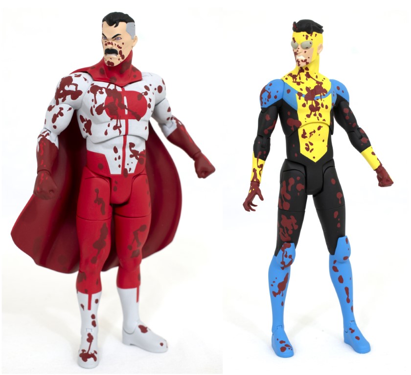 New viewers and long-time comic readers alike were shocked by the tremendous battle between Invincible and his father Omni-Man, from the Season 1 finale of the hit Prime Video animated series Invincible, based on the eponymous comic book series by Robert Kirkman, Cory Walker and Ryan Ottley. A battle for the ages, it spanned the globe and ended with both characters beaten, bloodied and bruised. Now, that battle is captured in a new box set of action figures from Diamond Select Toys!