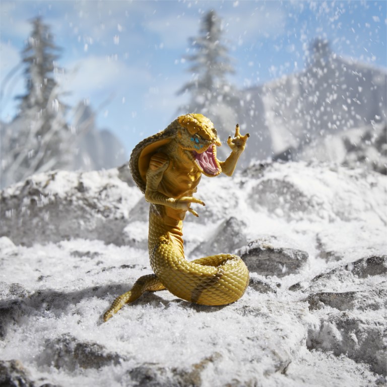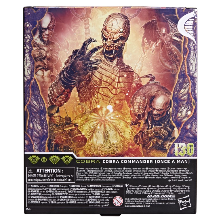 New to the G.I. JOE Classified Series line, Cobra Commander (Once A Man) comes ready for adventure, with multiple points of articulation for high poseability. Inspired by the character’s mutated appearance in G.I. JOE: The Movie, this 6-inch action figure contains 9 character-inspired accessory pieces including 4 alternate hands, alternate helmeted head, cracked faceplate, dagger, backpack, and weapon accessory. Includes an additional figure of Cobra Commander degenerated and mutated into primitive snake form. A transparent sleeve guards a phenomenal lenticular image depicting the horrific fate of Cobra Commander. Inside, the windowed display showcases the figure, accessory loadout, & dynamic digital renders.