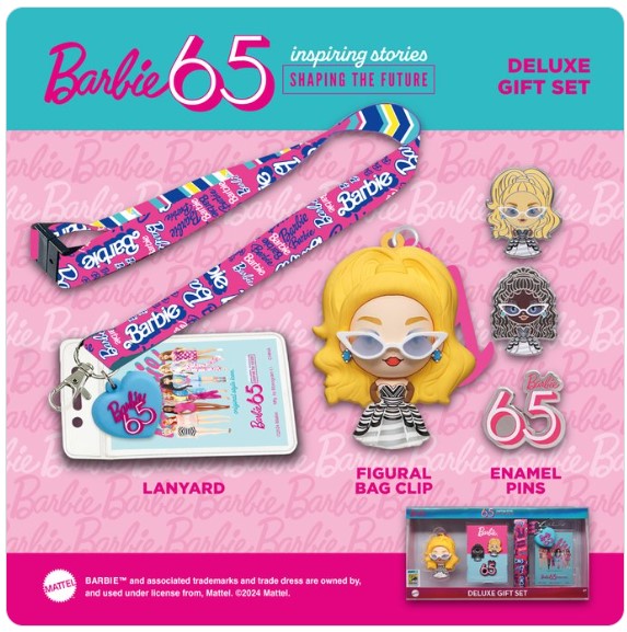 Home News Monogram International Announces Barbie Deluxe Gift Set SDCC Exclusive Monogram International Announces Barbie Deluxe Gift Set SDCC Exclusive MattG June 27, 2024 comments off Tweet on Twitter Share on Facebook Google+ Pinterest Monogram International today shared the SDCC exclusive Barbie (65th Anniversary) Deluxe Gift Set. This set includes a lanyard, a figural bag clip and 3 enamel pins. This set is limited to just 300 pieces. You can pick it up at SDCC at booth #3645. Monogram International SDCC