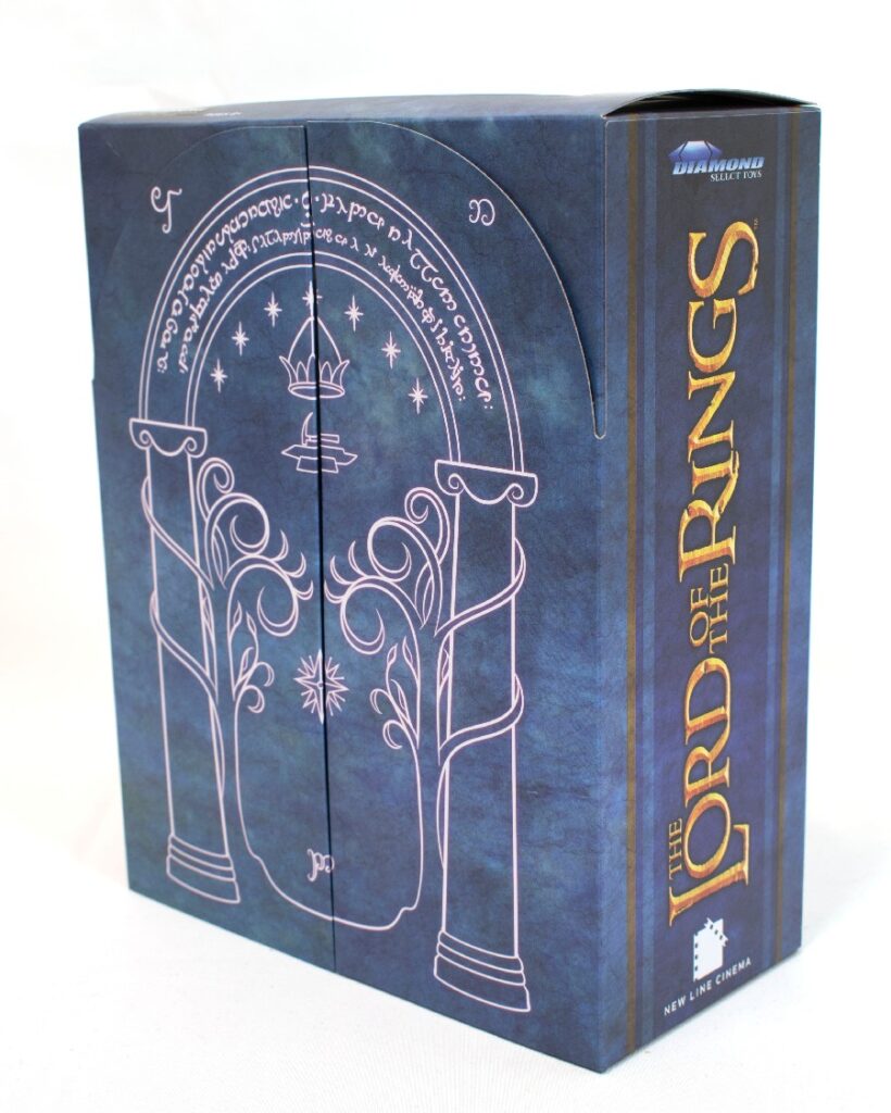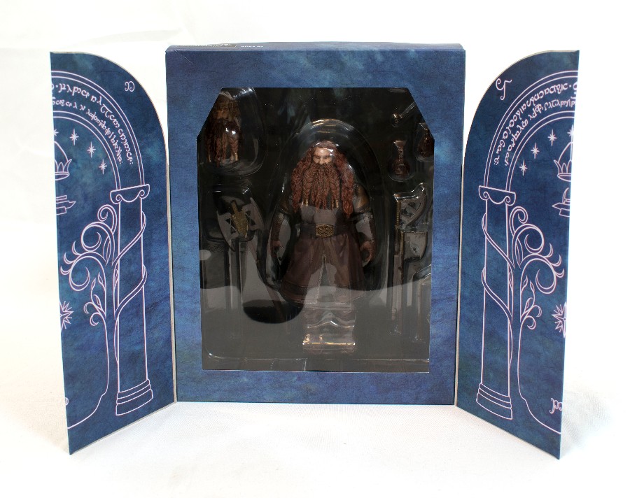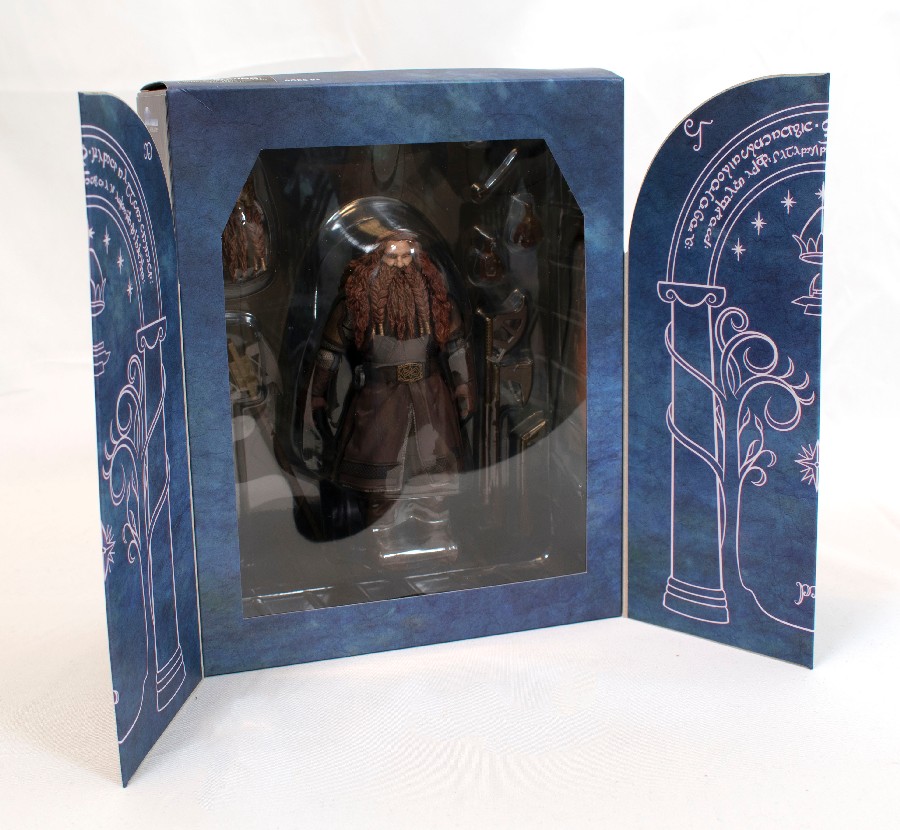One of Middle-Earth’s greatest heroes returns in an all-new deluxe box set! Gimli, Son of Gloin, member of the Fellowship of the Ring, gets an all-new unhelmeted head sculpt in this exclusive box set, packed to the seams with axes and interchangeable parts. Measuring approximately 5 inches tall, this 1/10 scale action figure features detailed sculpting and paint applications, and is limited to only 1500 pieces! It comes packaged in a deluxe box designed to resemble the Doors of Durin, entrance to the Mines of Moria, underground kingdom of his cousin Balin. Designed by Eamon O’Donoghue, sculpted by Gentle Giant Studios, packaging design by David Forrest of Kinetic Underground Inc.!