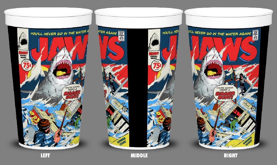 SAN DIEGO 2024 JAWS JAWS #1 PX SOUVENIR CUP (FEB248356) | When the beaches open this summer, you will be hydrated! Remember your terrifying trip to Amity Island with this PREVIEWS Exclusive souvenir cup from Fright-Rags! Featuring original artwork by Greg Woronchak, this 32-oz BPA-free plastic cup is limited to an edition of only 1000 pieces! Add it to your JAWS collection today! Hand Washing preferred.