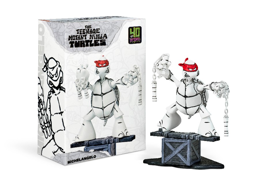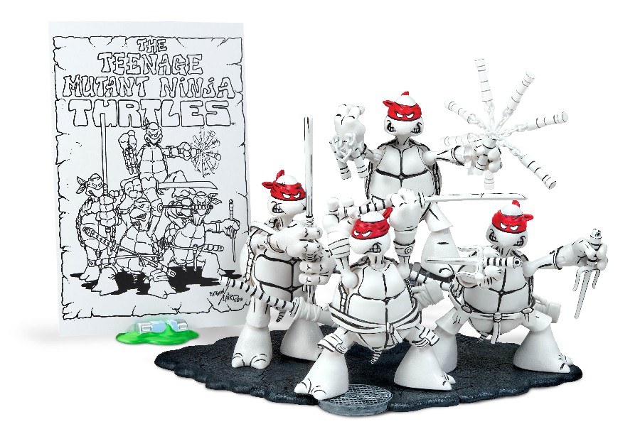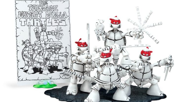 Booyakasha! Discover the origins of the Teenage Mutant Ninja Turtles with this exclusive figure set! Based on Kevin Eastman and Peter Laird’s first group sketch, each of these highly detailed, black-and-white turtles comes with signature weapons, a collectible sleeve, and a card of the original sketch. The figures also include bases that connect to recreate the iconic scene, making this set a must-have for any TMNT fan!