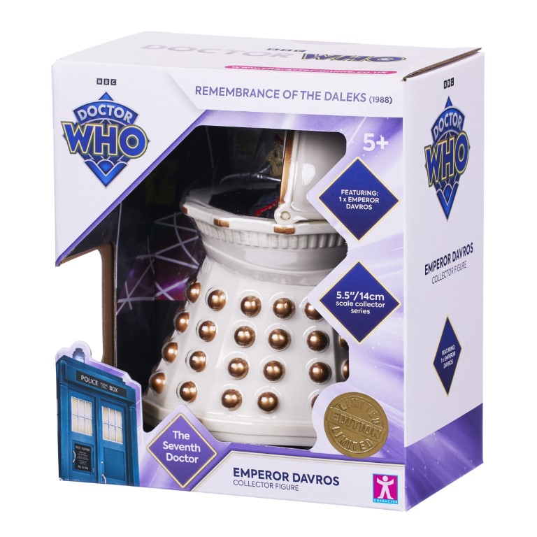 The box comes complete with a gold limited edition seal and an inner back drop that sets the scene for the Emperor Davros’s evil doings to come.