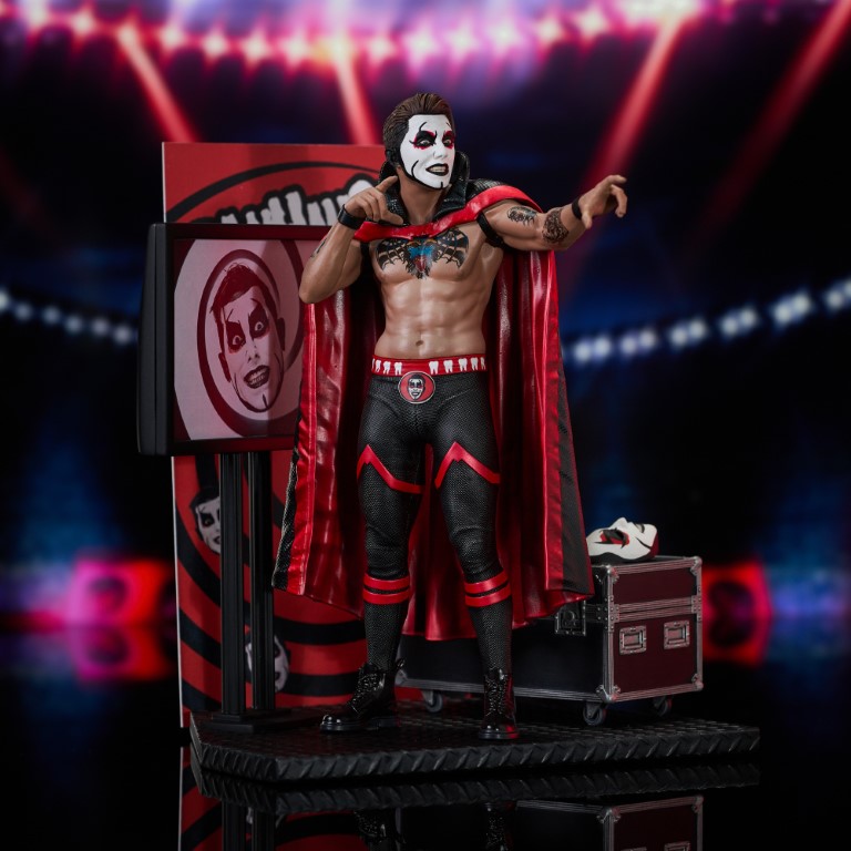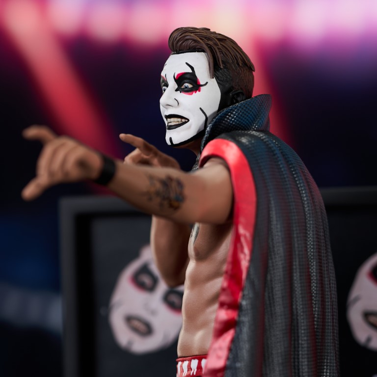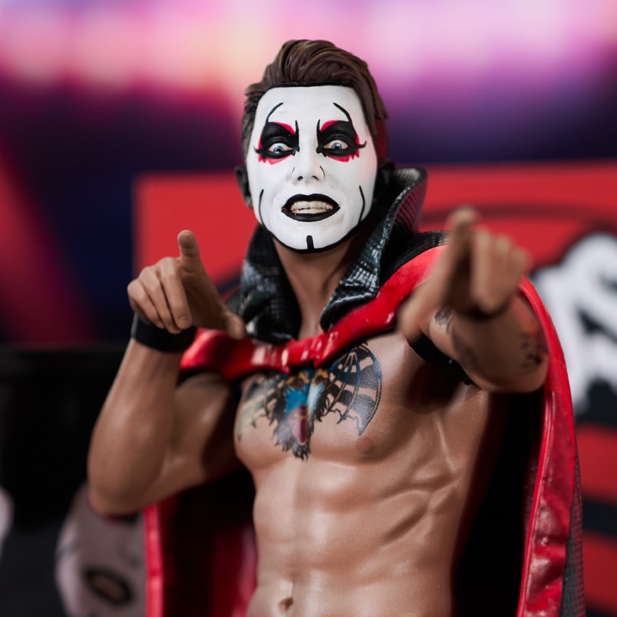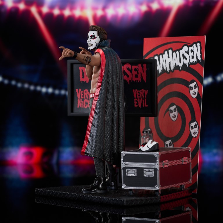 A Diamond Select Toys release! This statue is very nice, but very evil! All Elite Wrestling’s most mysterious and inscrutable personality is now the latest AEW Gallery Diorama! Measuring approximately 10 inches tall, this PVC statue of Danhausen depicts the tattooed wrestler in his full ring gear, including cape, surrounded by a TV monitor and a shipping container with a mask and a jar of teeth. Plus, the background and TV screen are interchangeable, so they can show Danhausen’s face or the AEW logo! It comes packaged in a full-color window box. Designed by Gabriel Cassata! SRP: $59.99