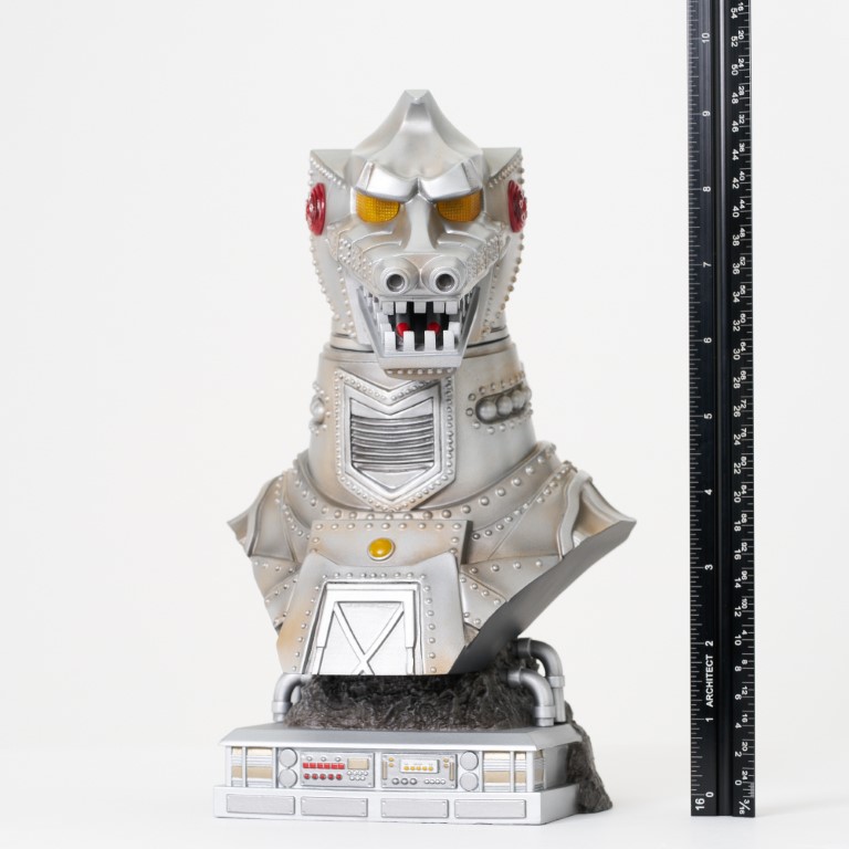 A Diamond Select Toys release! Mechagodzilla is a legend among kaiju fans, and now he’s a Legend in 3-D! The mechanized monster, one of Godzilla’s greatest foes, is now a 9-inch resin bust, with head and shoulders seated atop a tiny representation of his mountaintop control center. Plus, turn the bust around to reveal a portrait of his enemy and Godzilla’s friend, King Caesar! This bust features detailed sculpting and paint applications, and comes packaged in a full-color box with a numbered certificate of authenticity. Limited to only 1000 pieces. Designed by Joe Allard, sculpted by Rocco Tartamella! SRP: $200.00