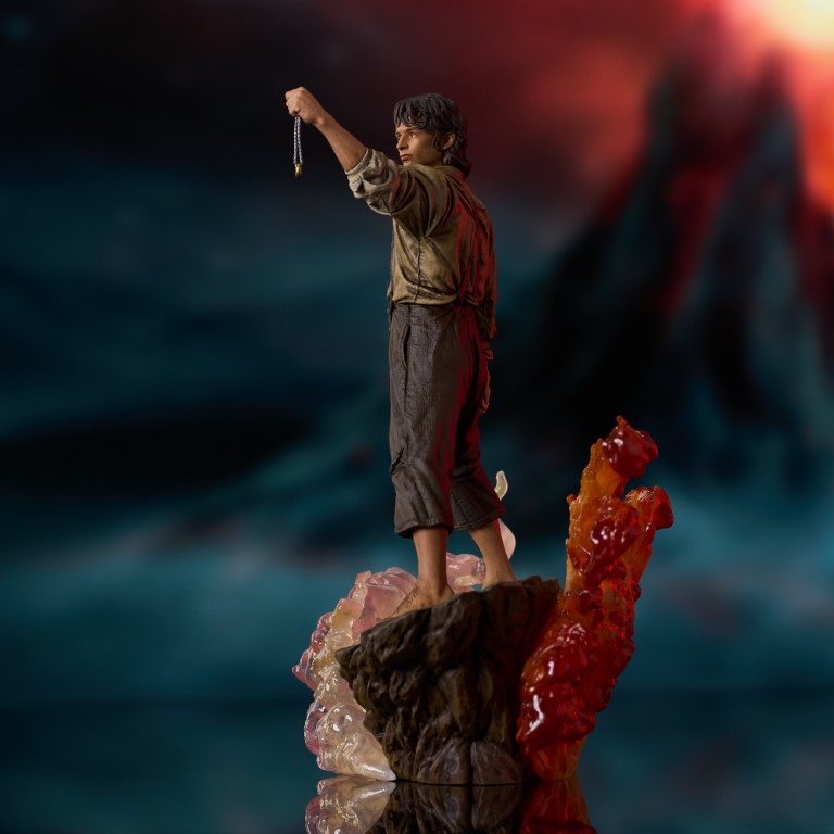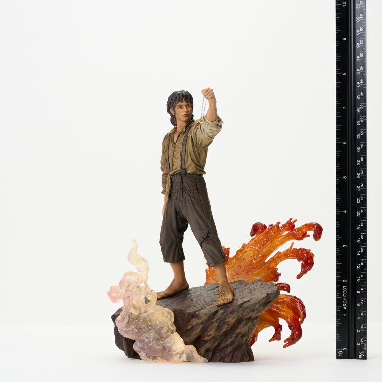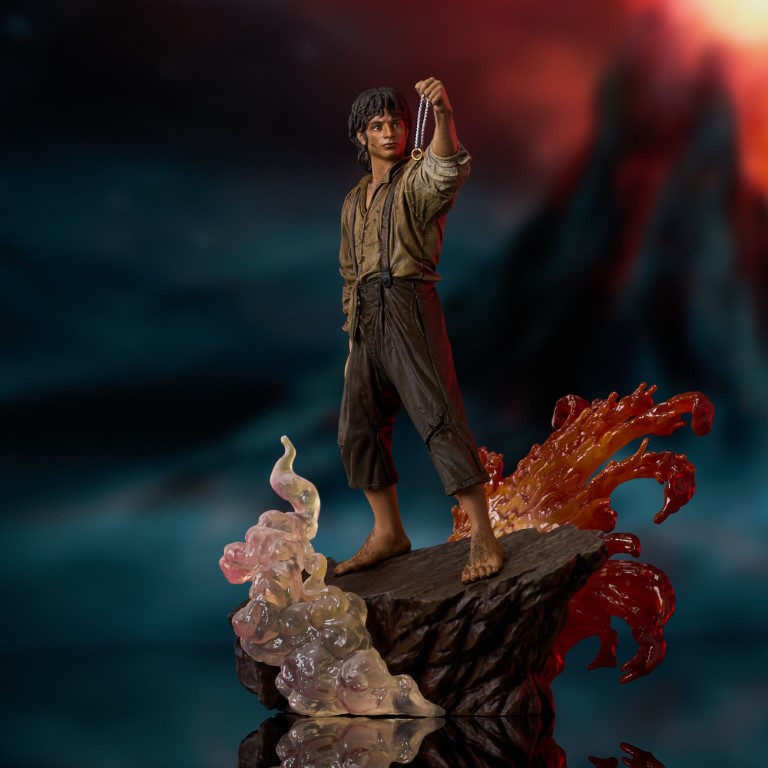 A Diamond Select Toys release! One does not simply walk into Mordor, and yet Frodo the Hobbit did, in order to destroy the One Ring in the fires of Mount Doom. Now, this Gallery Diorama depicts Frodo in his moment of triumph, preparing to drop the ring into the flames below. Measuring approximately 8 inches tall, this statue is made of high-quality PVC and features detailed sculpting and paint applications. It comes packaged in a full-color window box. Designed by Barry Bradfield, sculpted by Jorge Santos Souza! SRP: $80.00