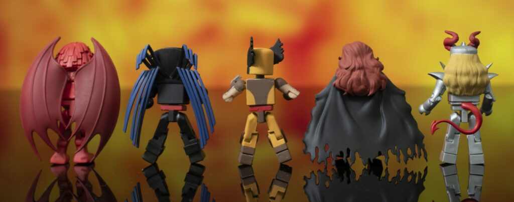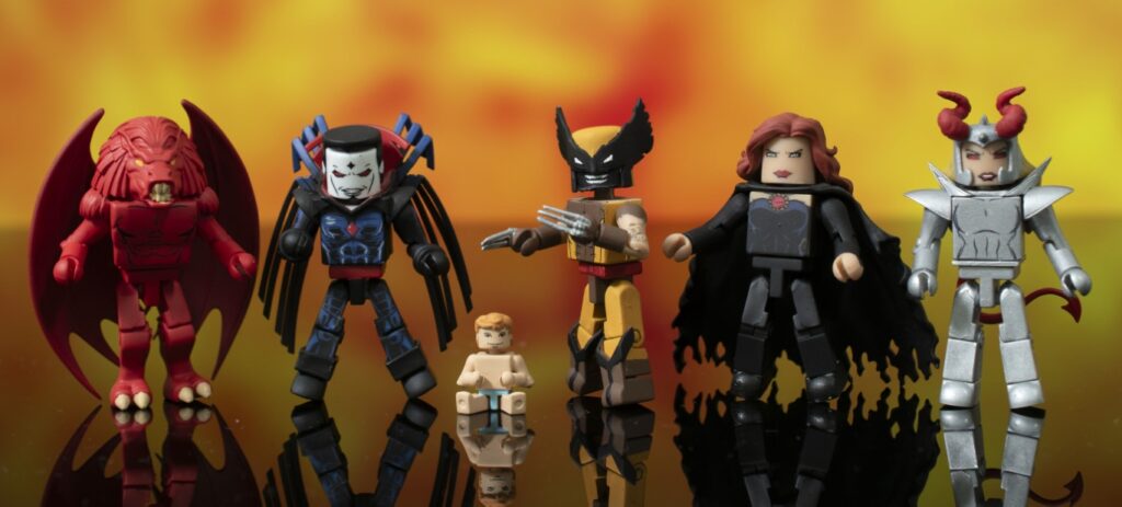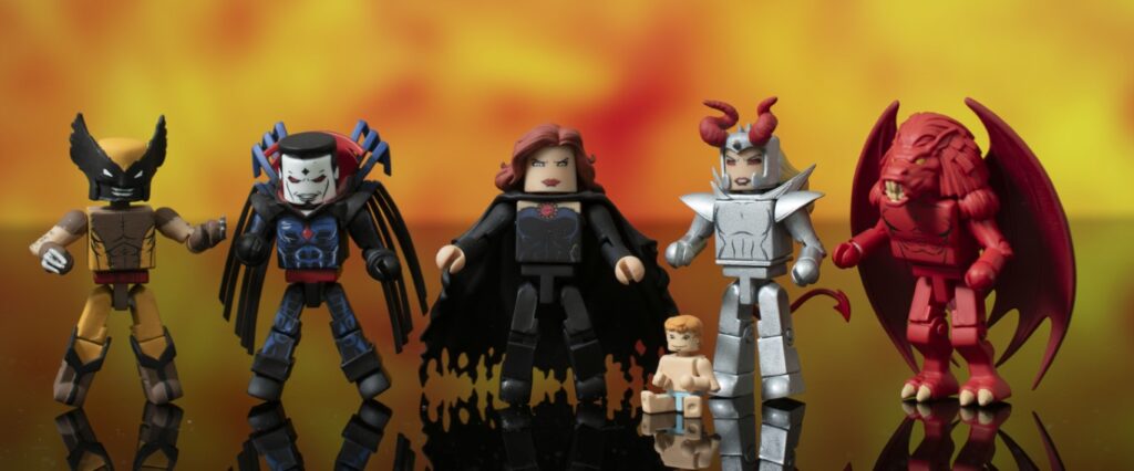 A Diamond Select Toys release! Let the Inferno commence! As far as comic book crossovers go, Inferno was a big one, spilling out of Limbo and into the X-Men books and beyond. Now, DST is proud to introduce the latest deluxe box set in the long-running Marvel Minimates line, dedicated to the iconic X-Men story! The five-figure set includes the Goblin Queen Madelyne Pryor, the demon N’Astirh, genetic criminal Mr. Sinister, a demon-possessed Wolverine, and the fully demonic Illyana Rasputin a.k.a. Magik. As a bonus, the set includes an alternate Wolverine face, Illyana’s Soulsword, five support stands and a non-poseable figure of baby Nathan Summers, a.k.a. Cable! All five come packaged in a full-color window box with a front flap featuring original artwork by Minimates artist designer Barry Bradfield. SRP: $39.99