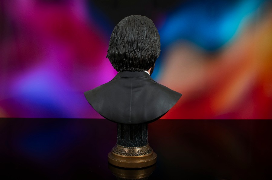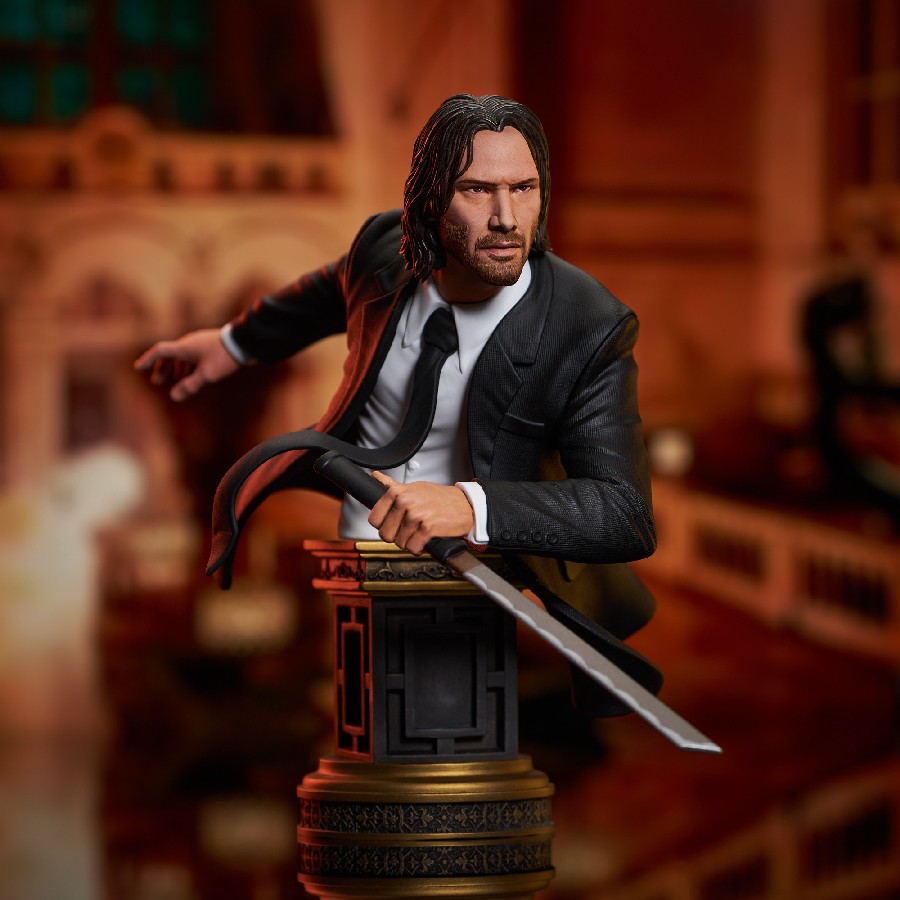 A Diamond Select Toys release! He’s back! For his first-ever 1/6 scale resin bust, John Wick wields a katana and a wind-whipped necktie atop a Continental hotel column. Standing approximately 6.5 inches tall, this mini-bust is based on his appearance in the third John Wick film, features detailed sculpting and paint applications and is limited to only 3,000 pieces. It comes packaged in a full-color box with a numbered certificate of authenticity. Designed by Nelson X. Asencio, sculpted by Juan Ramos! SRP: $130.00