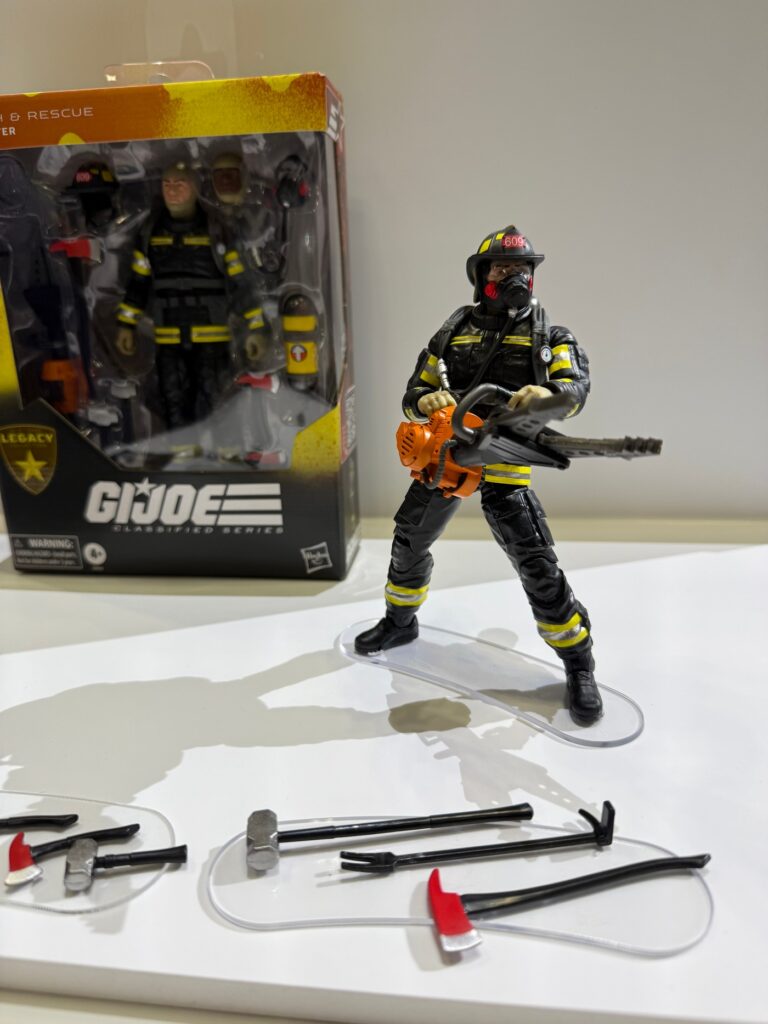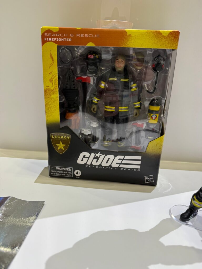 As part of my Toy Fair activities, I had the opportunity to visit Hasbro’s showroom filled with new toys. This post collects all the pictures I took of the G. I. Joe Classified section. The only truly new reveal today was the G.I. JOE Classified Series Legacy Collection – Search & Rescue Firefighter. However there was many items that had their “in person” debut having only been seen as renders previously.