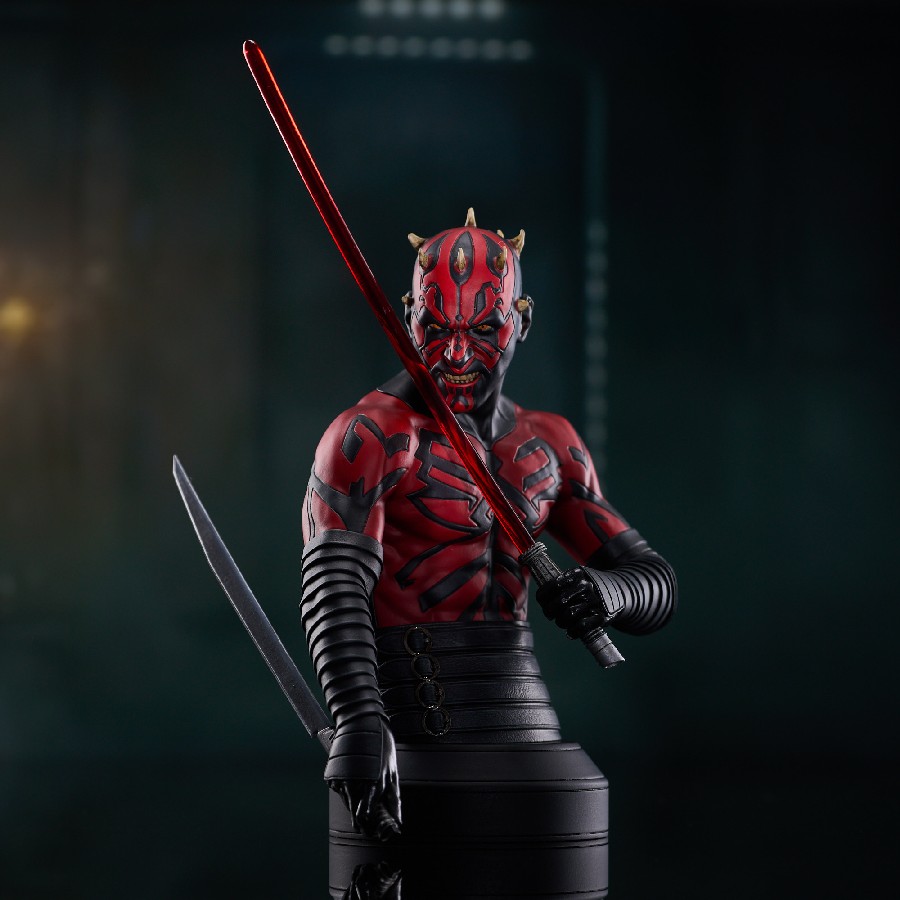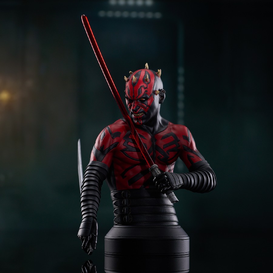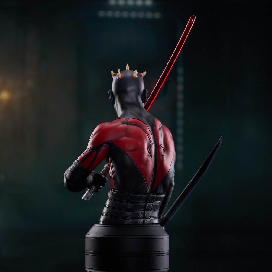 A Gentle Giant LTD release! Twin suns out, guns out! Everyone knows Darth Maul has some cool face tattoos, but did you know they don’t stop there? In the Clone Wars series, Darth Sidious’s apprentice rocks a full torso of tatts, and this is the first mini-bust to capture them! This approximately 6-inch resin mini-bust depicts the Sith Lord with his full-body tattoos revealed and is limited to only 3,000 pieces. It comes packaged in a full-color box with a numbered certificate of authenticity. SRP: $130.00