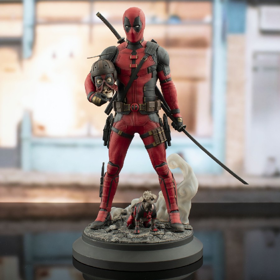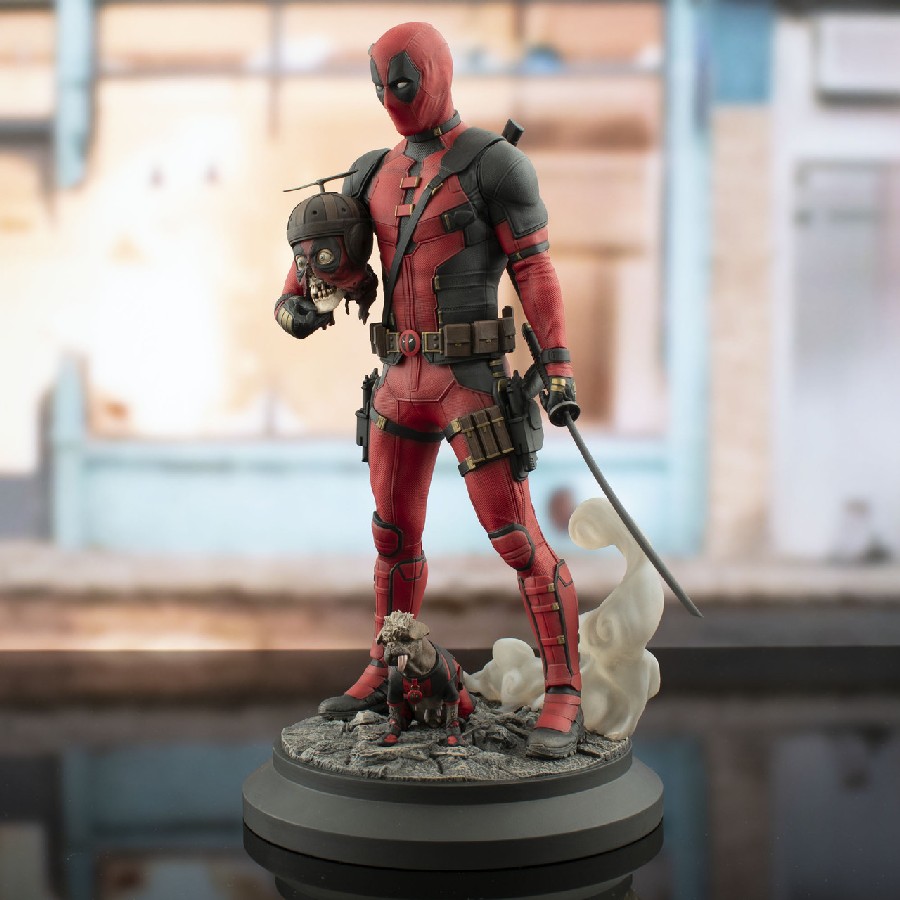 A Diamond Select Toys release! Pools of the world unite! Deadpool, based on his appearance in Marvel Studios’ Deadpool & Wolverine, holds Headpool under one arm and a sword in the other hand, while Dogpool sits by his feet in this approximately 11-inch resin statue. Part of DST’s Premier Collection, this 1/7 scale statue stands atop a smoking rubble base, and features detailed sculpting and paint applications. It is limited to only 3,000 pieces and comes packaged in a full color box with a numbered certificate of authenticity. Designed by Nelson X Asencio, sculpted by Rocco Tartamella! SRP: $200.00