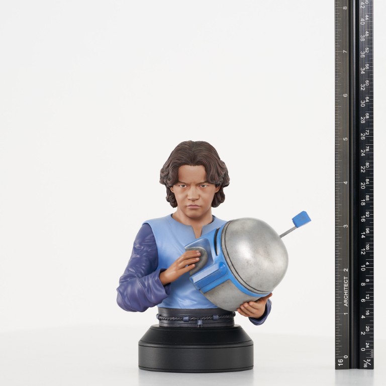 A Gentle Giant LTD release! He will avenge his father! Young Boba Fett holds his father Jango’s helmet in his hands as he plots his revenge on the Jedi who killed the bounty hunter. This approximately 5-inch resin mini-bust features actor likeness atop a black pedestal base and is limited to only 2,000 pieces. It comes packaged in a full-color box with a numbered certificate of authenticity. SRP: $100.00