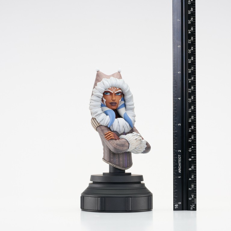 A Gentle Giant LTD release! Bundle up, because the newest animation-inspired Star Wars bust takes us to icy Ilum, where Ahsoka Tano is taking her charges to build their first lightsabers! Based on the episode The Gathering,” this approximately 5-inch mini-bust of Ahsoka features animation-accurate sculpting and detailed paint applications. It comes packaged in a full-color window box, with a numbered certificate of authenticity. Limited to 3,000 pieces. SRP: $99.00
